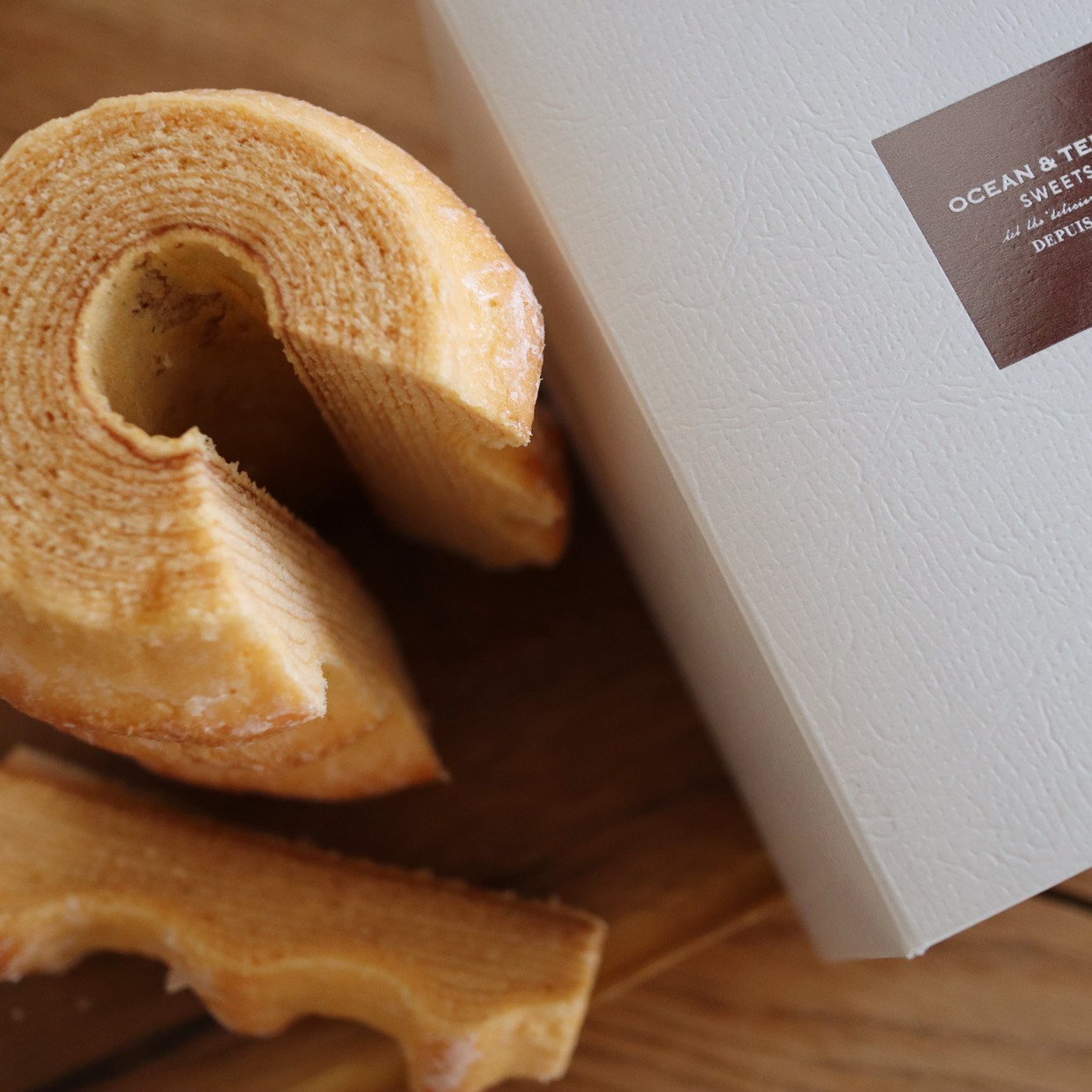 一層一層丁寧に焼き上げるバウムクーヘンは、切り口が年輪のように見えることから繁栄や長寿を意味し、「幾重にも重なった年輪のように、末永く夫婦関係が続くように」という願いが込められます。