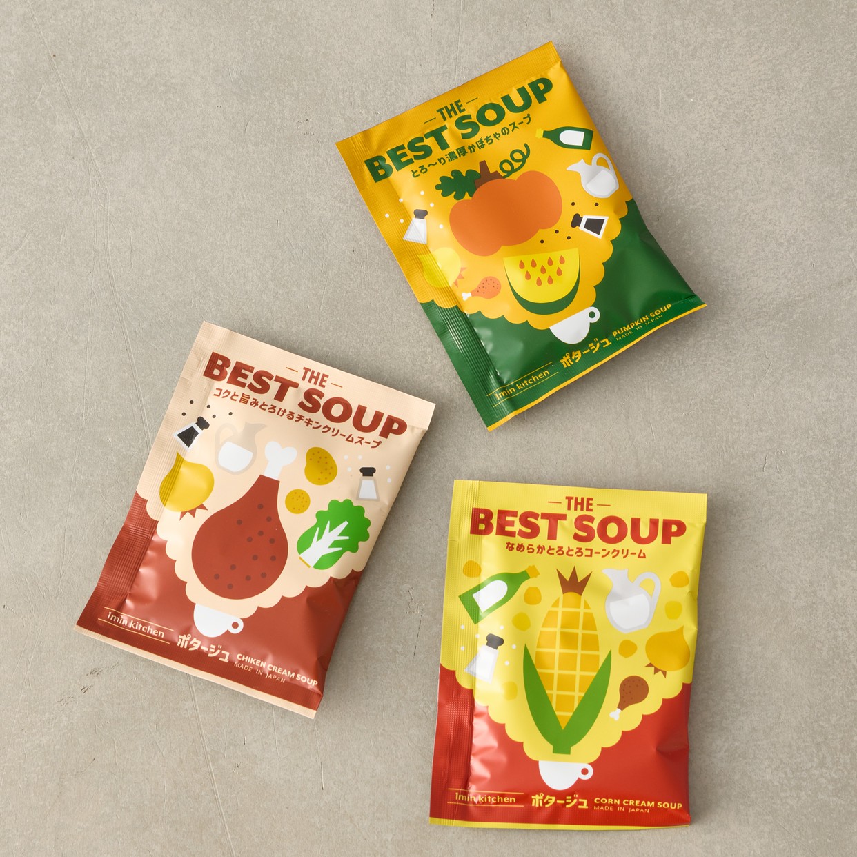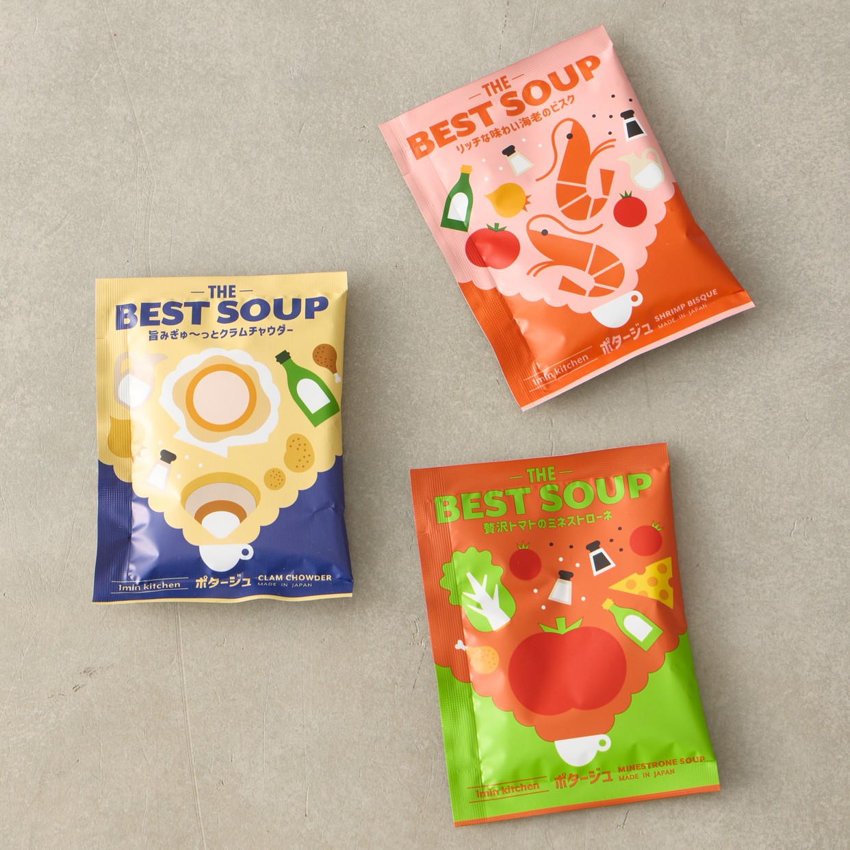 粉末スープが1食分となっている個包装でどれも味わい深い贅沢なスープになっています。