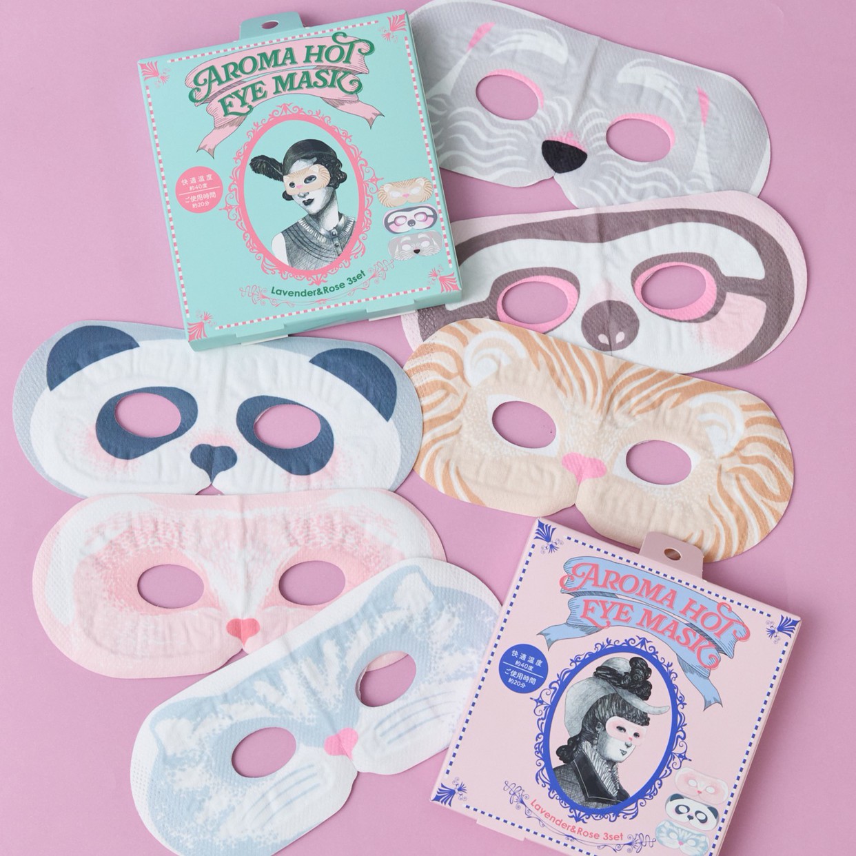 袋の中には3種類のアニマルのイラストが描かれた愉快なアイマスクが3種類入っています。