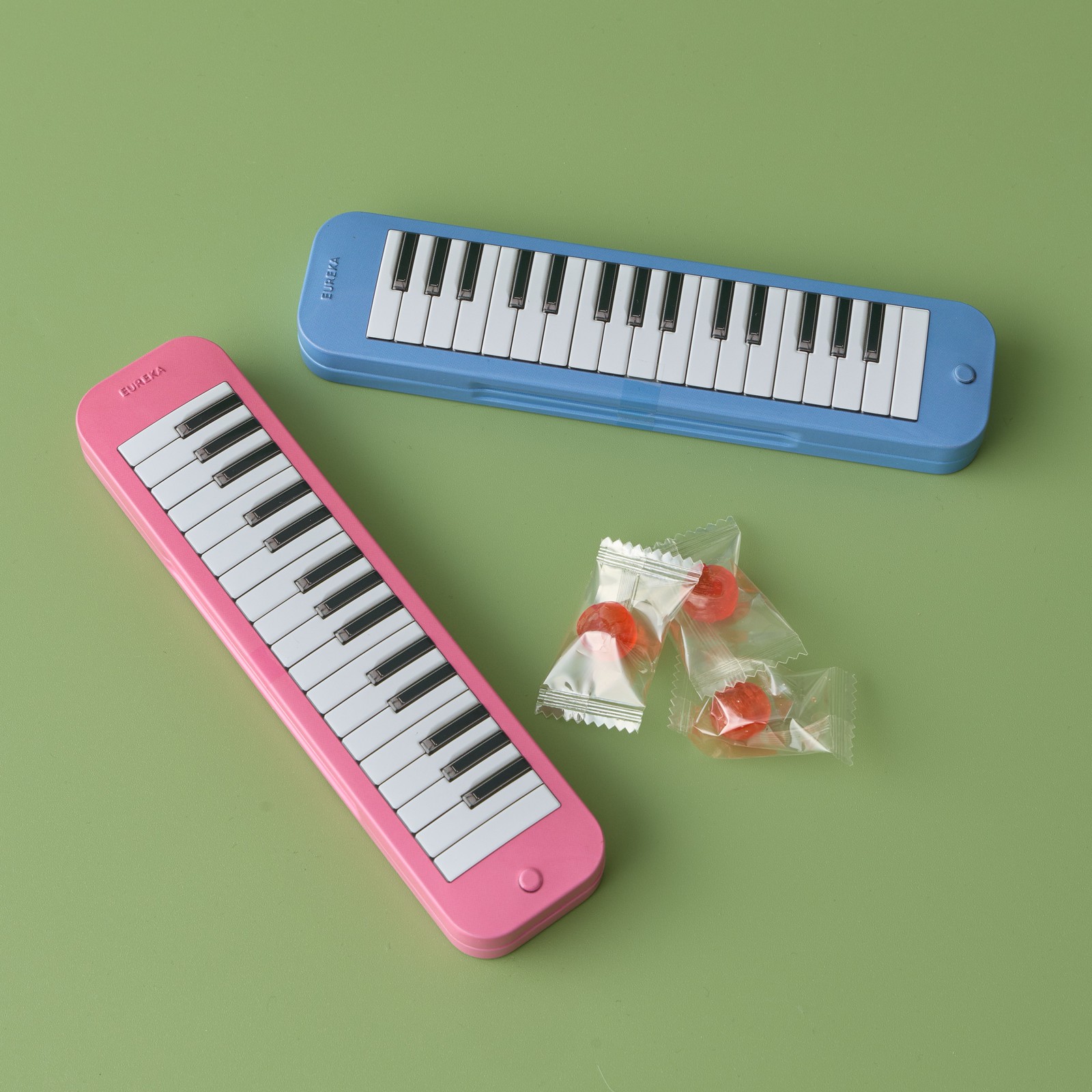鍵盤ハーモニカをモチーフにした細長デザイン缶。