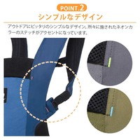 使わない時はサッとまとめられる収納カバーと、バッグに入れて持ち運べる便利な一体型の収納ポーチ付き。細かな調整が不要のシンプルデザインで、お子さまとのお出かけが増えてきたファミリーにちょうどいい抱っこ紐です。また、通気性の良いメッシュ素材のフードや、暗い場所でも安心の反射テープなど、うれしい便利な機能もつまっています。