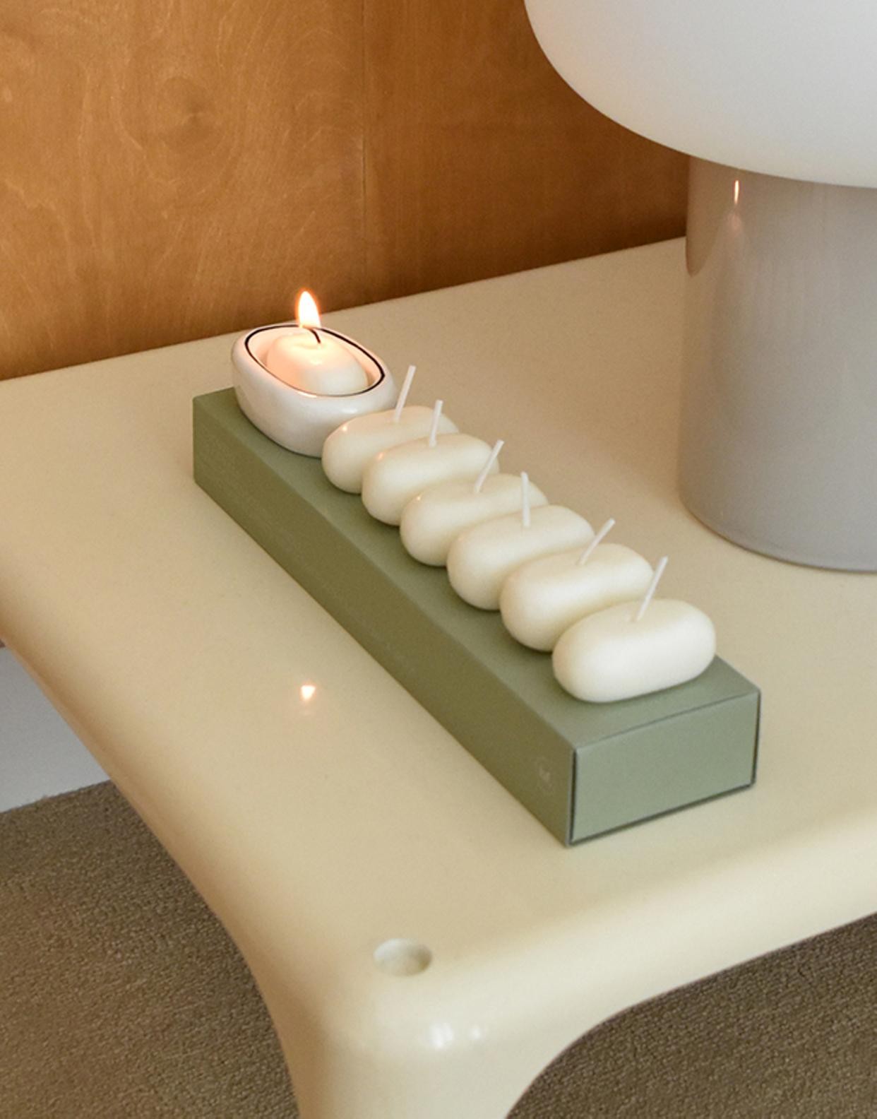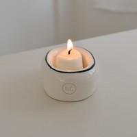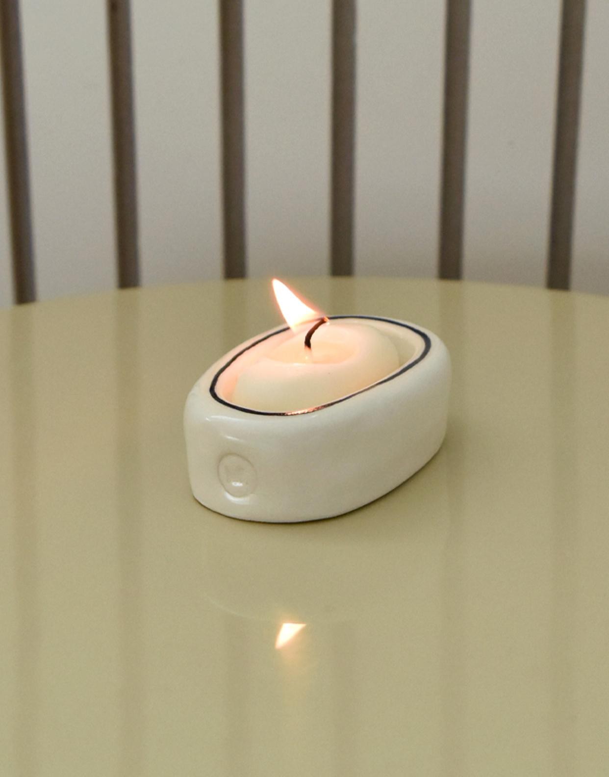 コロンと愛らしいフォルムのキャンドルに専用ホルダーつき。