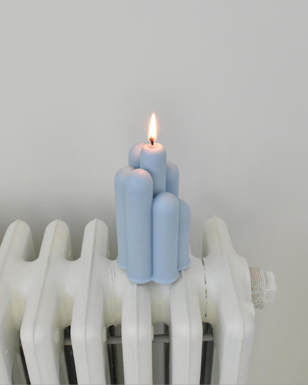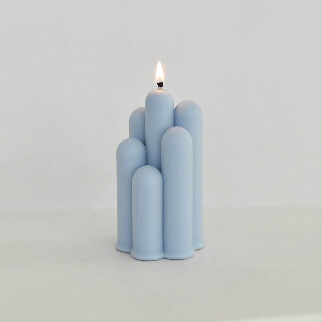 長さの異なる七本の柱が調和。ユニークなデザインのキャンドルが完成しました。