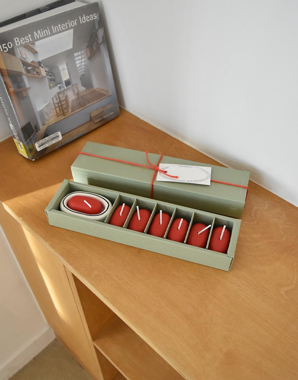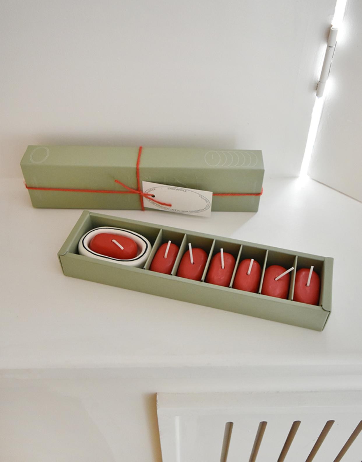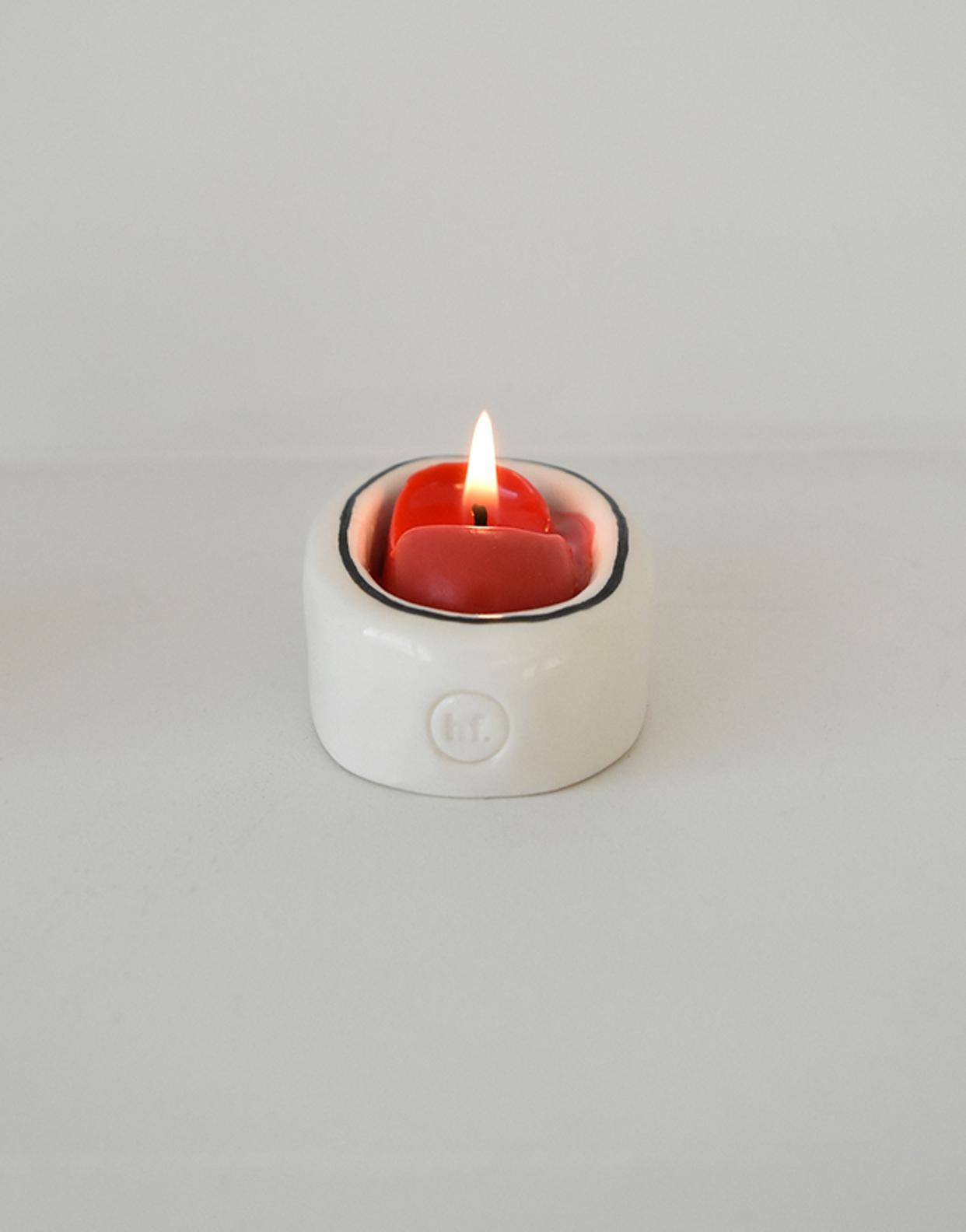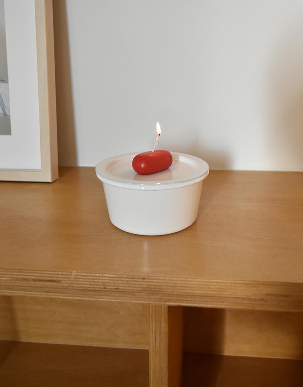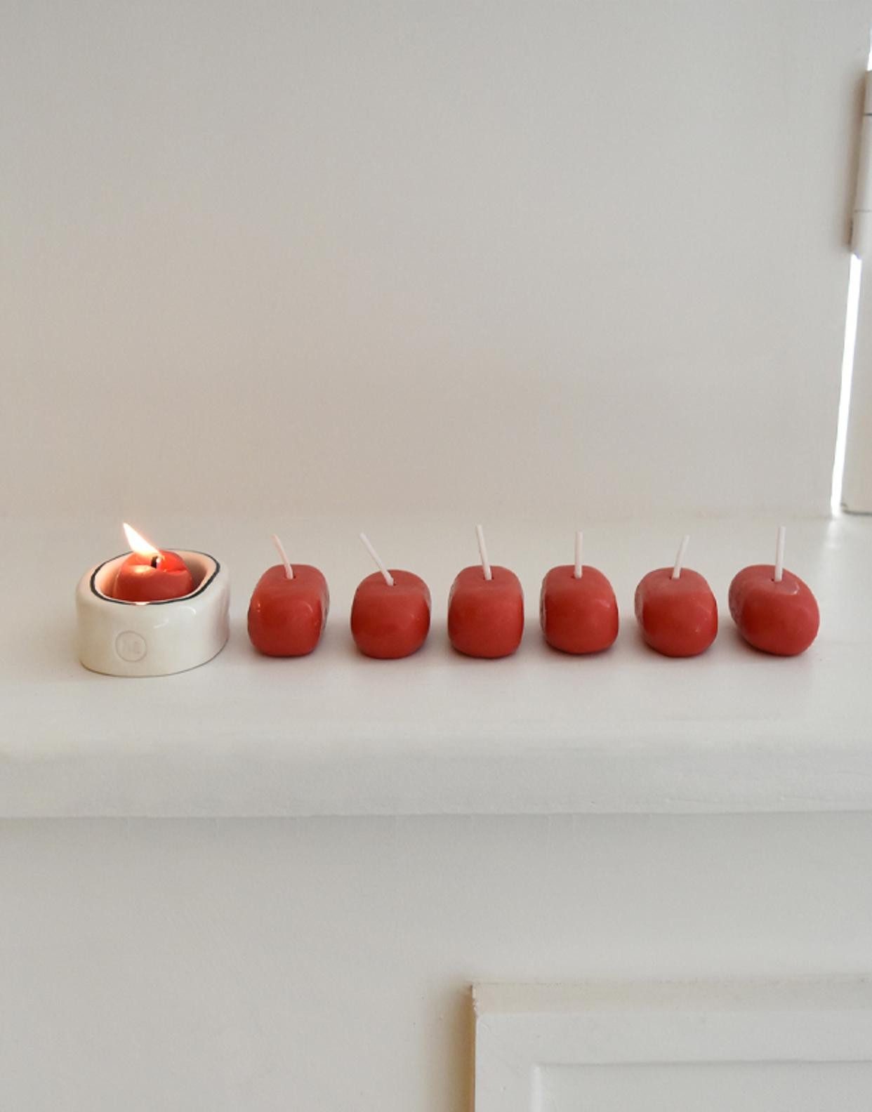 コロンと愛らしいフォルムのキャンドルに専用ホルダーつき。