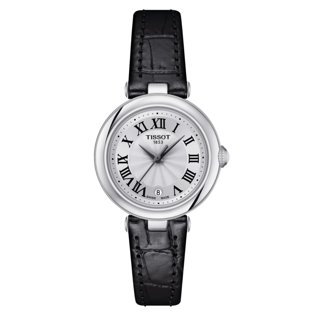 昼も夜も常に自分らしさを表現したいと願う女性に送るTissot Bellissima[ティソ ベリッシマ]。クオーツは女性の華奢な手首にフィットする26mmという小ぶりのケース径、リューズを彩るホワイトセラミックのカボション、ダイアル中央から放射状に伸びていくロゼットの繊細なギョーシェ彫りとベゼルのゴドロン装飾、そしてローマ数字のインデックスが、まるでソワレの装いのように腕元を美しく彩り、エレガントな印象を演出。