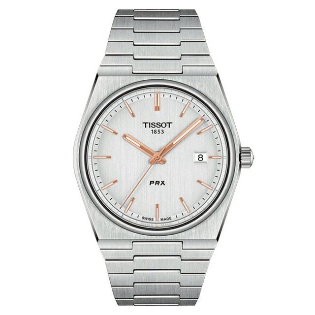 その名に”Precise and Robust(高精度かつ堅牢)”という意味を持ち、“X”で10気圧防水性能を表すPRXの、ケースからブレスレットに向かって幅広のリンクへとシームレスに変化を遂げる滑らかで美しいライン。
