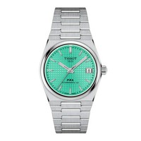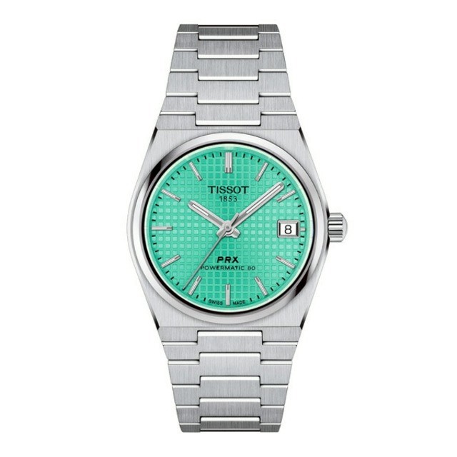 Tissot PRX 35mm パワーマティック 80は、ノスタルジックな魅力と現代的な独創性が調和した1本。ワッフルダイヤルのパターンがこの時計にさらなる特徴を与えています。最大 100 メートルの耐水性と Nivachron™ ヒゲゼンマイを備えた PRX は、時計製造の芸術を理解する人にとって素晴らしい作品です。トリプルブレードフォールディングスチールクラスプを備えたサテン仕上げのスチールブレスレットは、揺るぎない快適さを保証します。