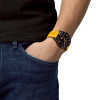 氷があたりを支配するユングフラウ山頂でも、常に通り道を見つけ出す太陽。T-タッチ コネクト スポーツは、太陽の光を動力源に、あらゆる環境下でも力強く動き続けます。 都市生活にも、高地でのアドベンチャーにも対応するようデザインされたこのウォッチは、軽量で耐久性に優れたチタン製ケースに、直感的な操作が可能なタッチスクリーン式サファイアクリスタルを搭載。スマートフォンと連携するコネクテッドウォッチであり、アクティビティを記録するウェブサービス「Strava」と同期することで、ユーザーは自身のパフォーマンスを記録・追跡し、ルートをマッピングしながら、リアルタイムで達成状況を確認できます。 秒針とインデックスにあしらわれたイエローのアクセントは、ユングフラウ鉄道と、それを走る鉄道が巡る山々の旅を象徴するカラーへのオマージュです。そして、太陽光で駆動することで、抜群の自律性を発揮します。 スタイルにもこだわり、都会的でテクニカルな印象を与えるブラックのバイマテリアルストラップと、高地での冒険のエネルギーを表現した大胆なイエローのシリコンストラップが付属しています。
