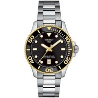波の下から感じることのできる静寂。透明な海では太陽の光が水面を貫き、心の中にはただ穏やかな時間が流れています。そんな海の中の世界へ扉を開いてくれるのが、このTISSOT シースター 1000です。36mmのTISSOT シースター 1000は、存在感のある時計。都会のジャングルを平然と歩き、海の底に潜っても大丈夫な強さを備えています。ラッカー仕上げの文字盤にステンレススチール製のケースとブレスレット、一方向回転ベゼル、ねじ込み式リューズ、30気圧(300m/1000フィート)の防水機能が付いています。36mmのTISSOT シースター 1000で気分転換をして、別世界に足を踏み入れてみませんか?