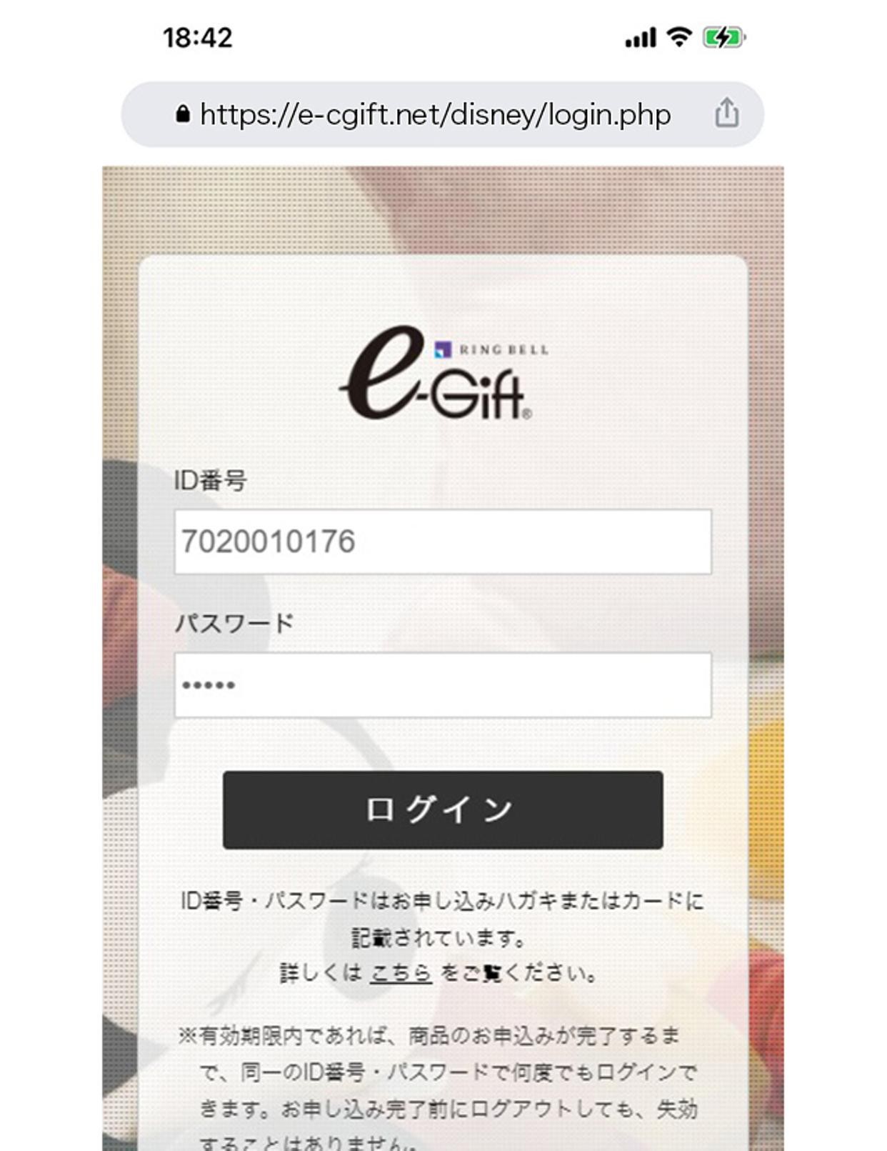 2.LINEで届いたURLを開き、お取り寄せ専用サイトのログイン画面からログイン。