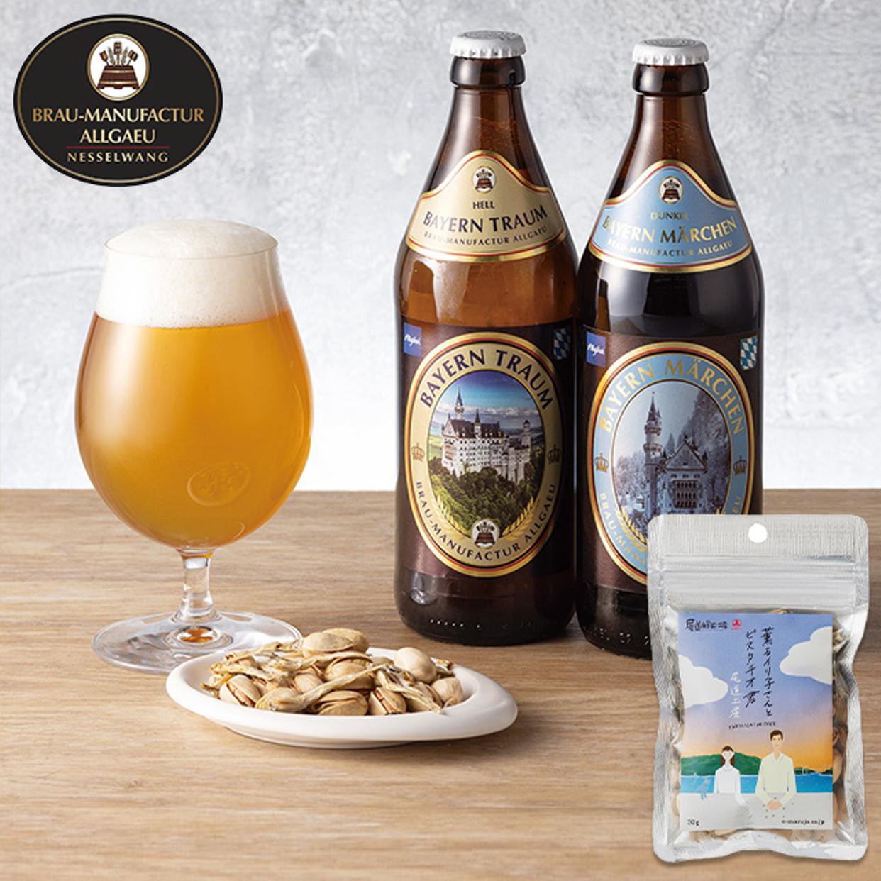 さわやかな春の風のように、軽やかでフレッシュなバイエルンTRAUM(ヘル)。繊細なホッピングにより、発泡性と軽快さが生まれます。バイエルンMARCHEN(デュンケル)は、ダークでモルティーなビールで、わずかにホップの苦味があります。日本初上陸のドイツビールです。今回はおつまみをセットでお届けします。