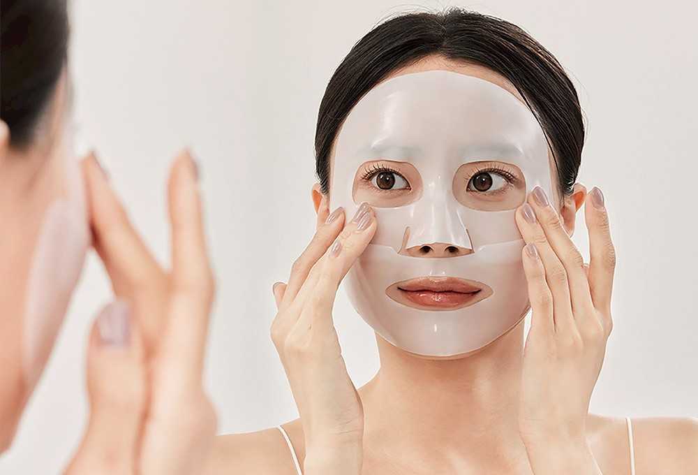 洗顔後、清潔な肌にマスクを密着させます。