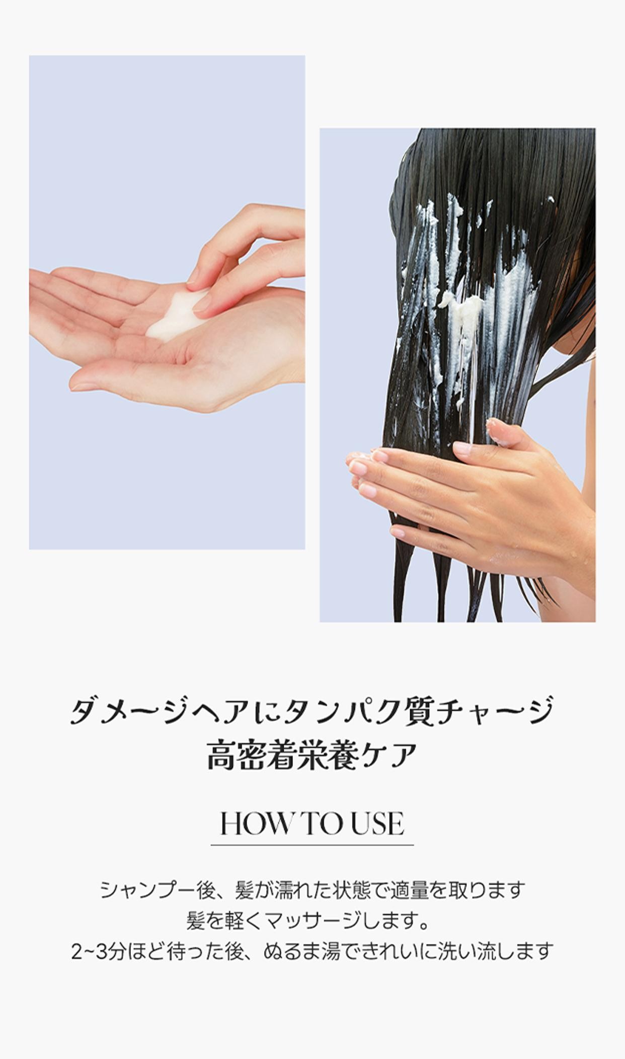 ダメージを受けた毛髪に水分を補給しツヤツヤでなめらかな髪に仕上げます。