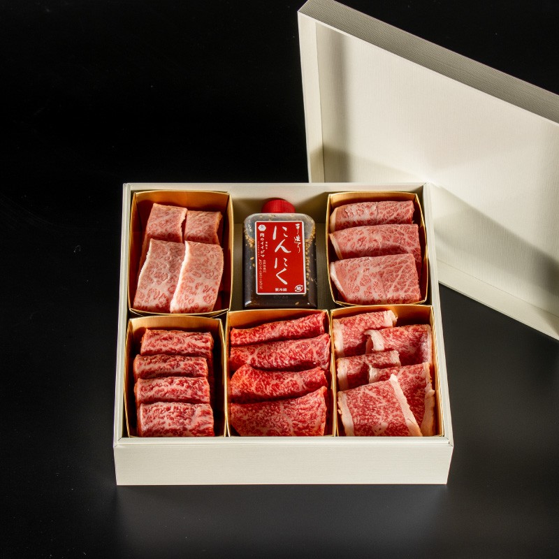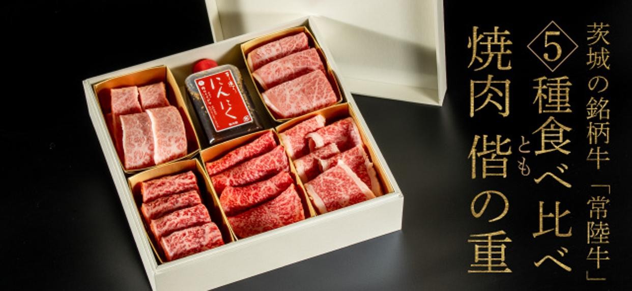 茨城のブランド牛『常陸牛』を5種類詰め合わせた焼き肉食べ比べ重。