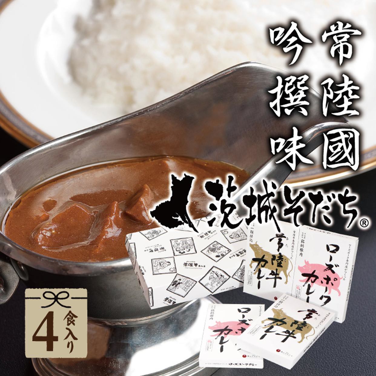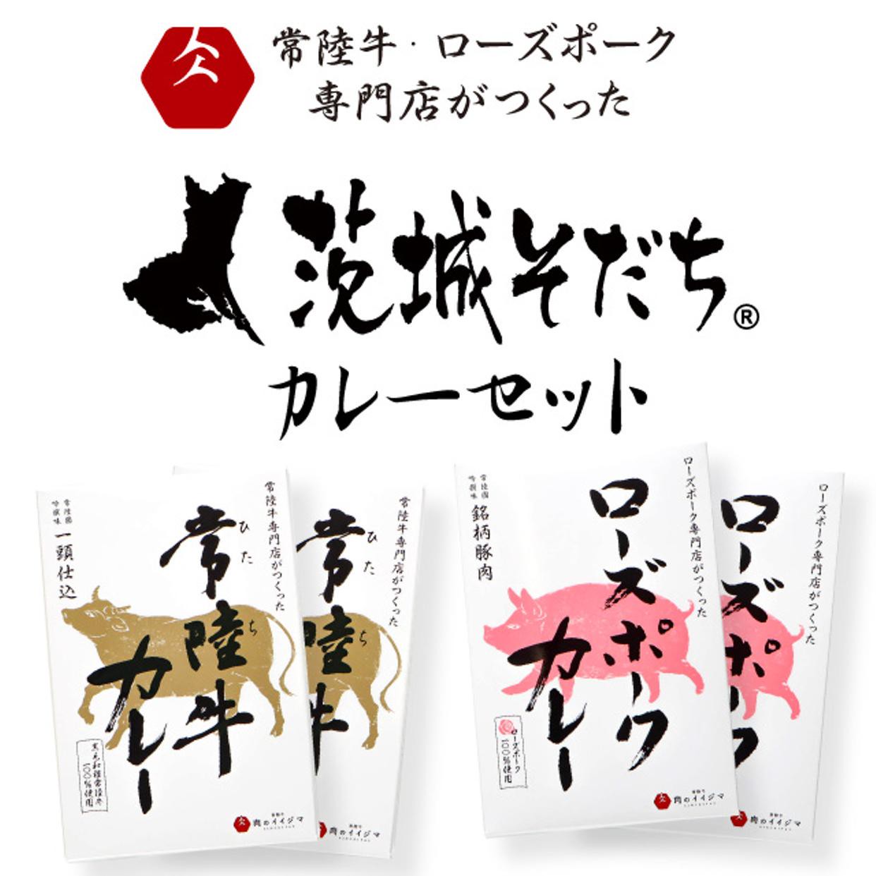 茨城県産銘柄牛「常陸牛」と茨城県産銘柄豚「ローズポーク」のカレーセット。