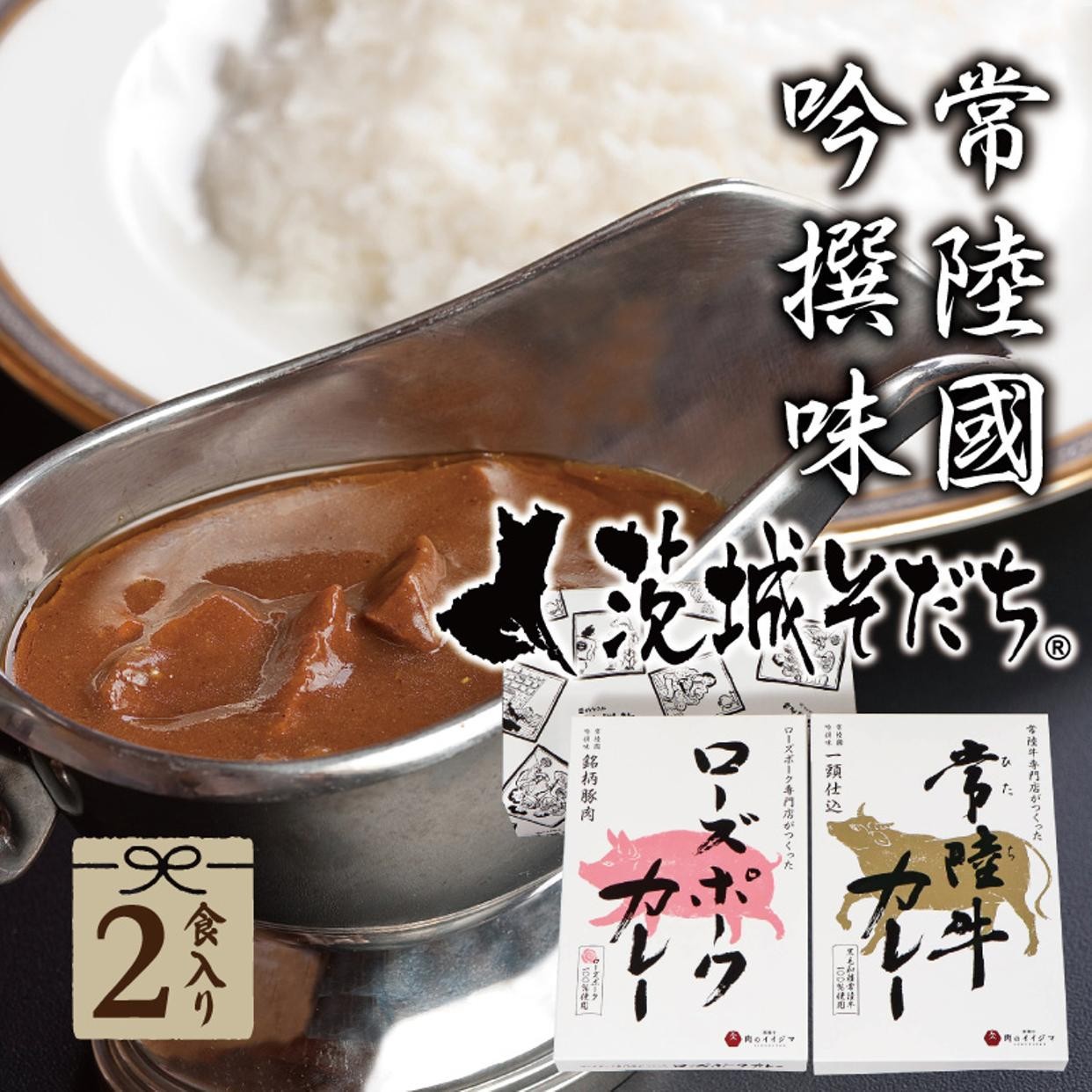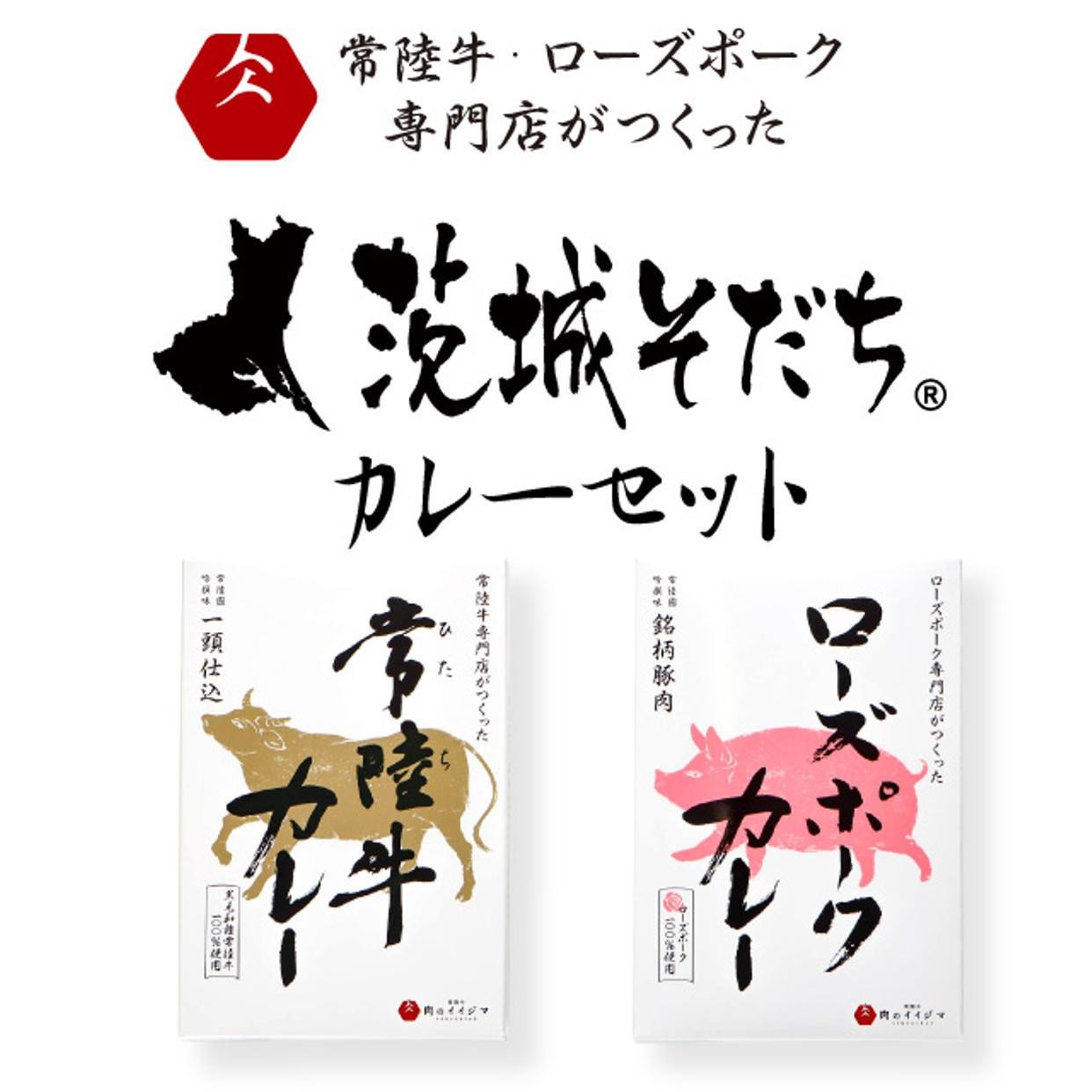 茨城県産銘柄牛「常陸牛」と茨城県産銘柄豚「ローズポーク」のカレーセット。