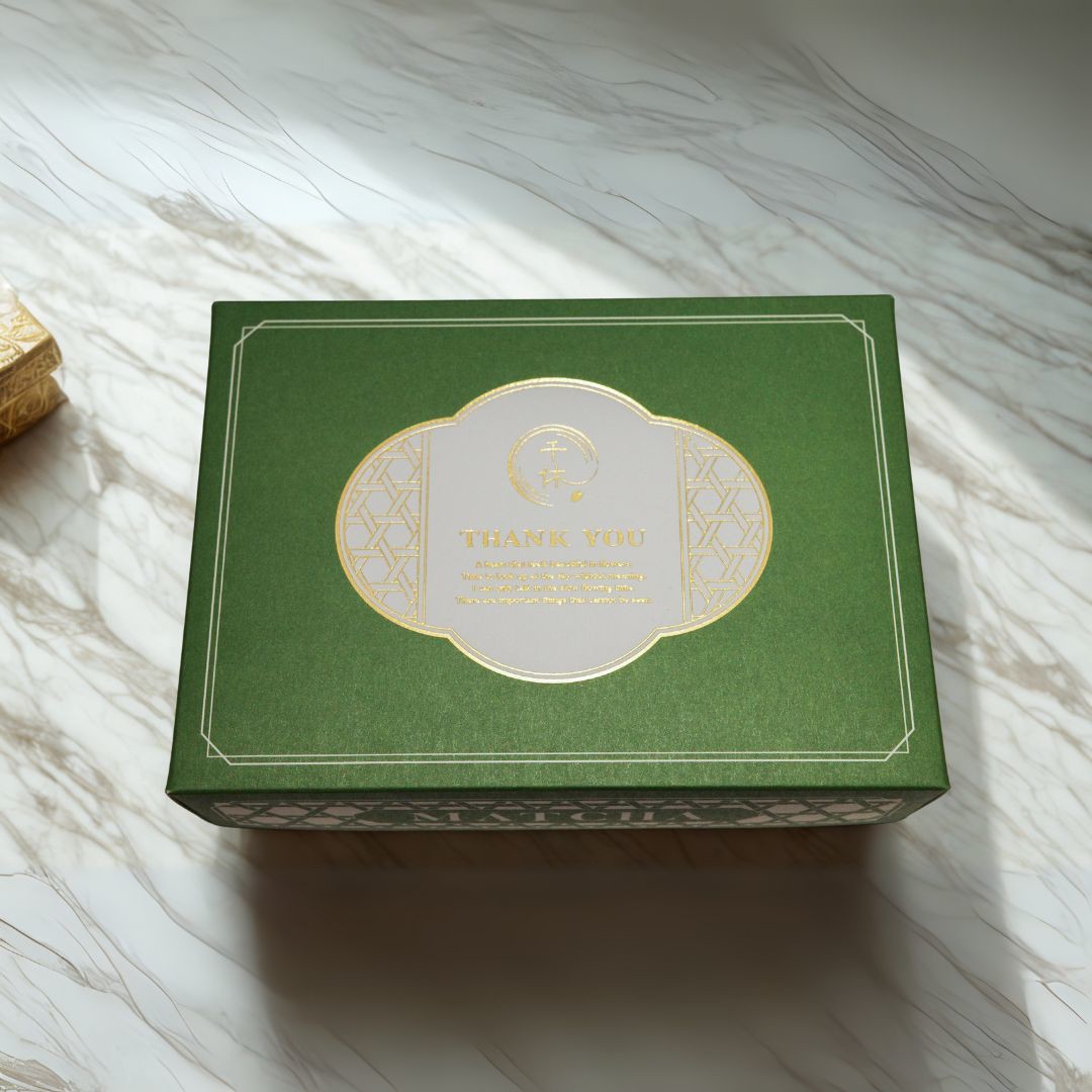 「抹茶の深み」と「癒しのひととき」を表現した、上質感ただよう深緑を基調とした和モダンなデザインのBOXに入れてお届けします。