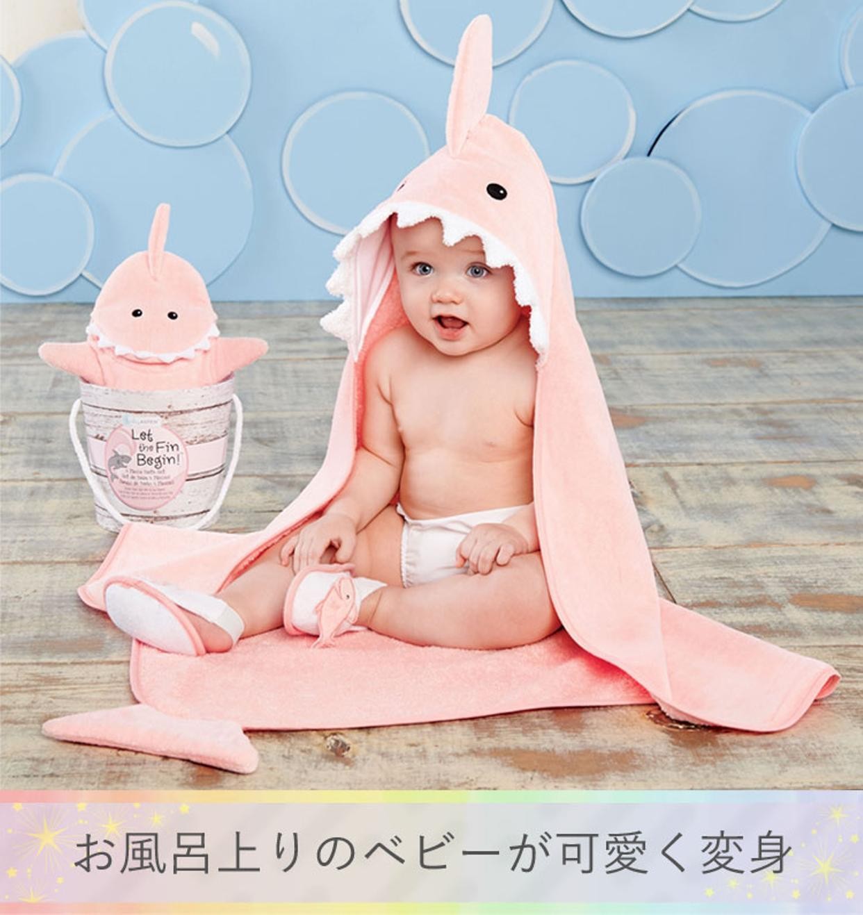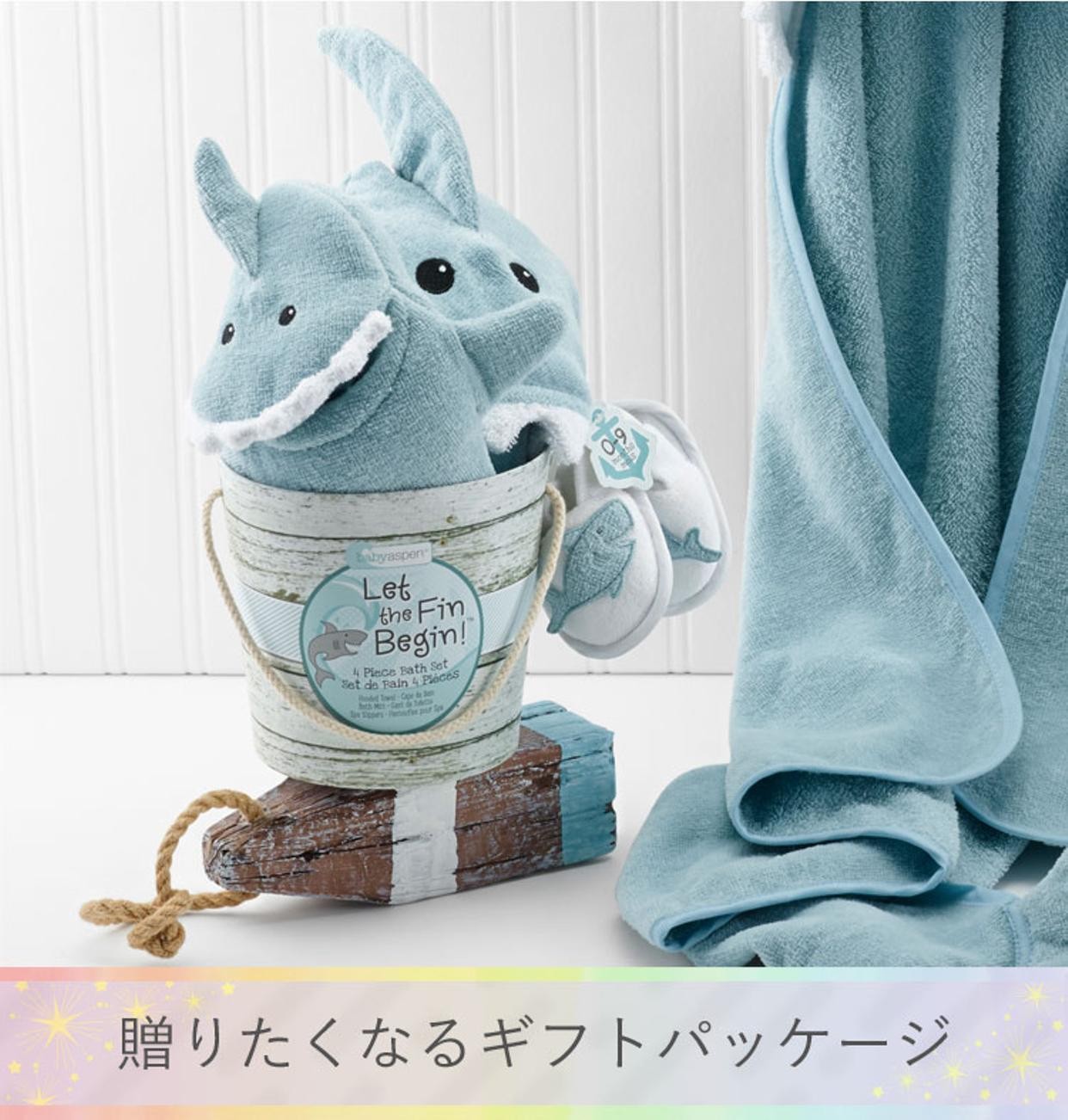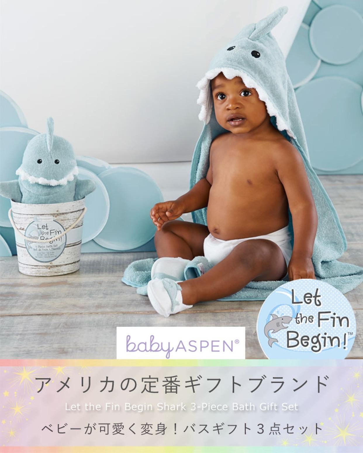 アメリカの定番ギフトブランド「BABY ASPEN」(ベビーアスペン)から、ベビーシャワーや出産お祝いにぴったりなバスギフト3点セットが届きました。海の生き物や架空の生き物のお顔をデザインしたフード付きベビーバスタオル、お風呂用ミトン、ベビー用スリッパは、小さなお子様のお風呂時間が楽しくなること間違いなし!見ているみんなを笑顔にしてくれるアイテムがつまったギフトセットです。