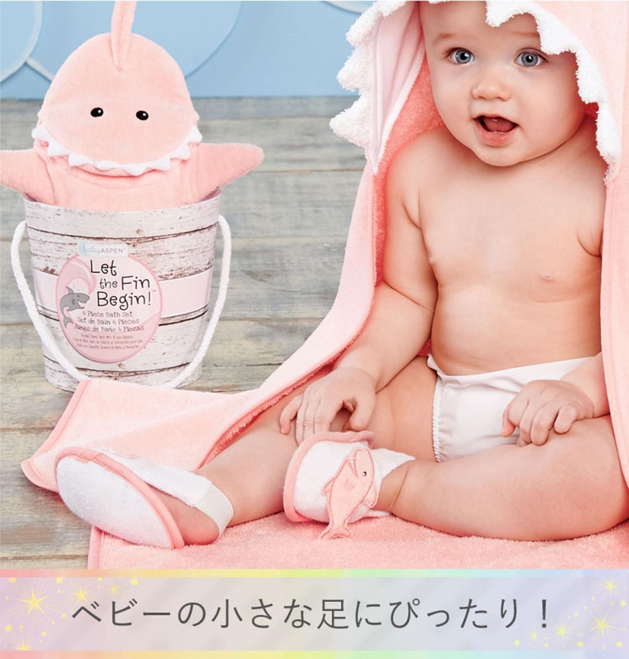 ベビーアスペン ベビー バスギフト 3点セット (フード付きバスタオル+バスミトン+スリッパ)