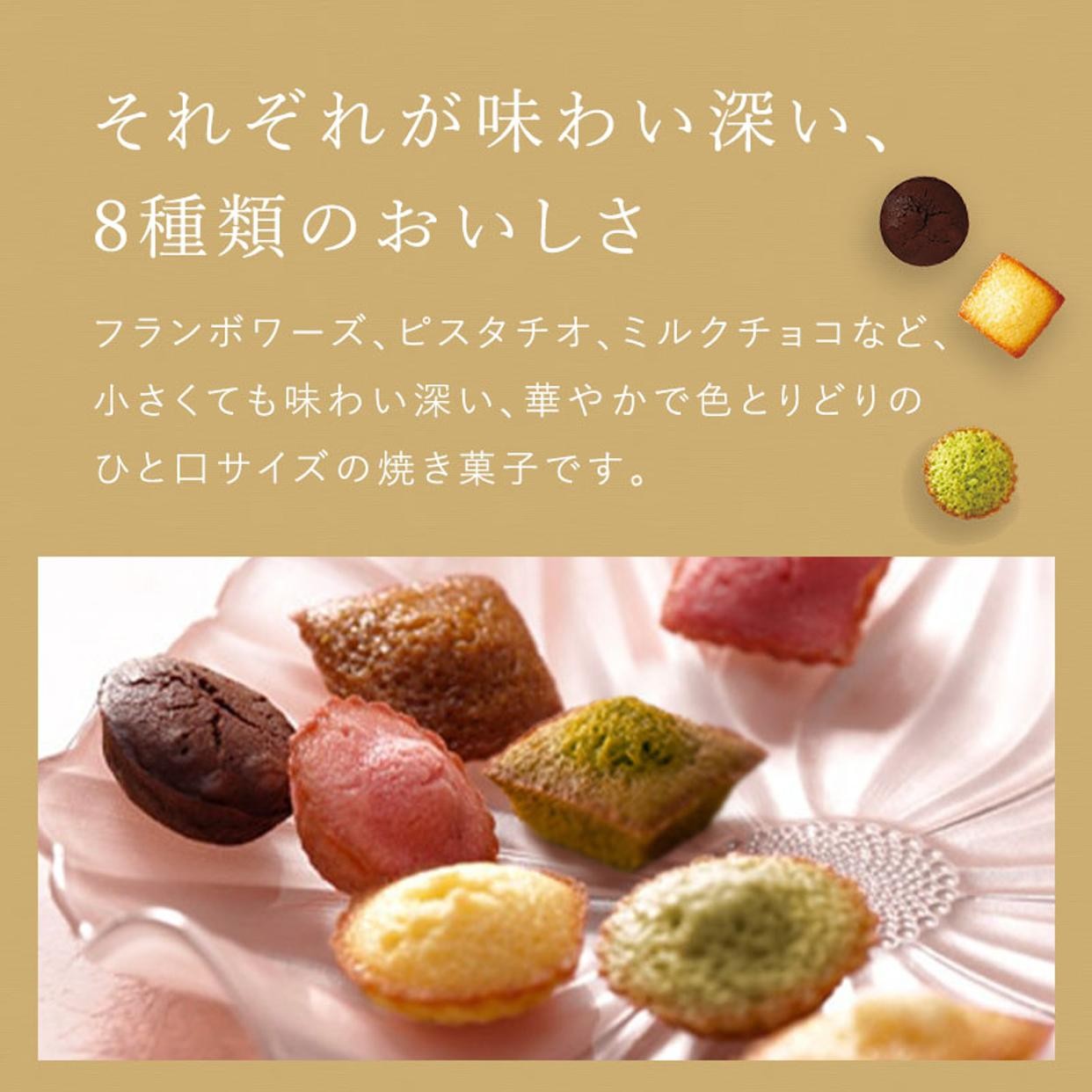 ■内容量:プティ・ガトー・アソルティ×12個(フィナンシェ、キャラメル、ピスターシュ、フランボワーズ各2、マドレーヌ、ミルクチョコ、抹茶、フレーズ各1)