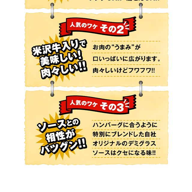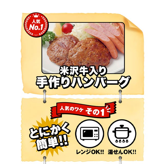 焼肉屋がつくる、絶品ハンバーグ。粗挽きだからお肉の食感が美味しい!特製デミグラスソースとの相性も抜群です。焼いてあるので解凍後電子レンジか湯せんでOK!一人暮らしの方にもおすすめです!内容量:米沢牛入ハンバーグ2個、保冷剤賞味期限:出荷から60日