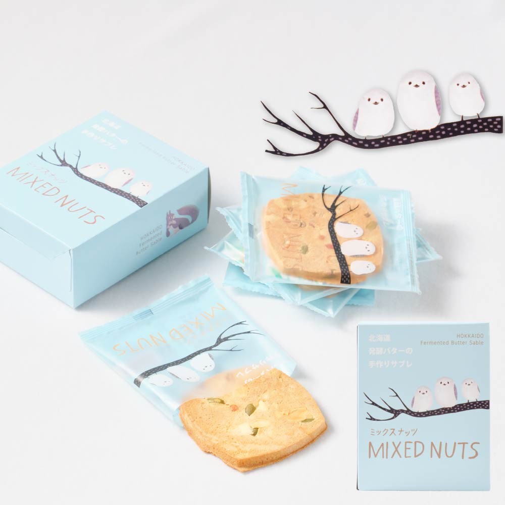 北海道で木の実を主として食べる動物たちがモチーフとなった、かわいいパッケージが人気。