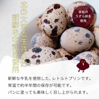 酪農家の新鮮な牛乳と自社のうずら卵を使用した、レトルトプリンです。