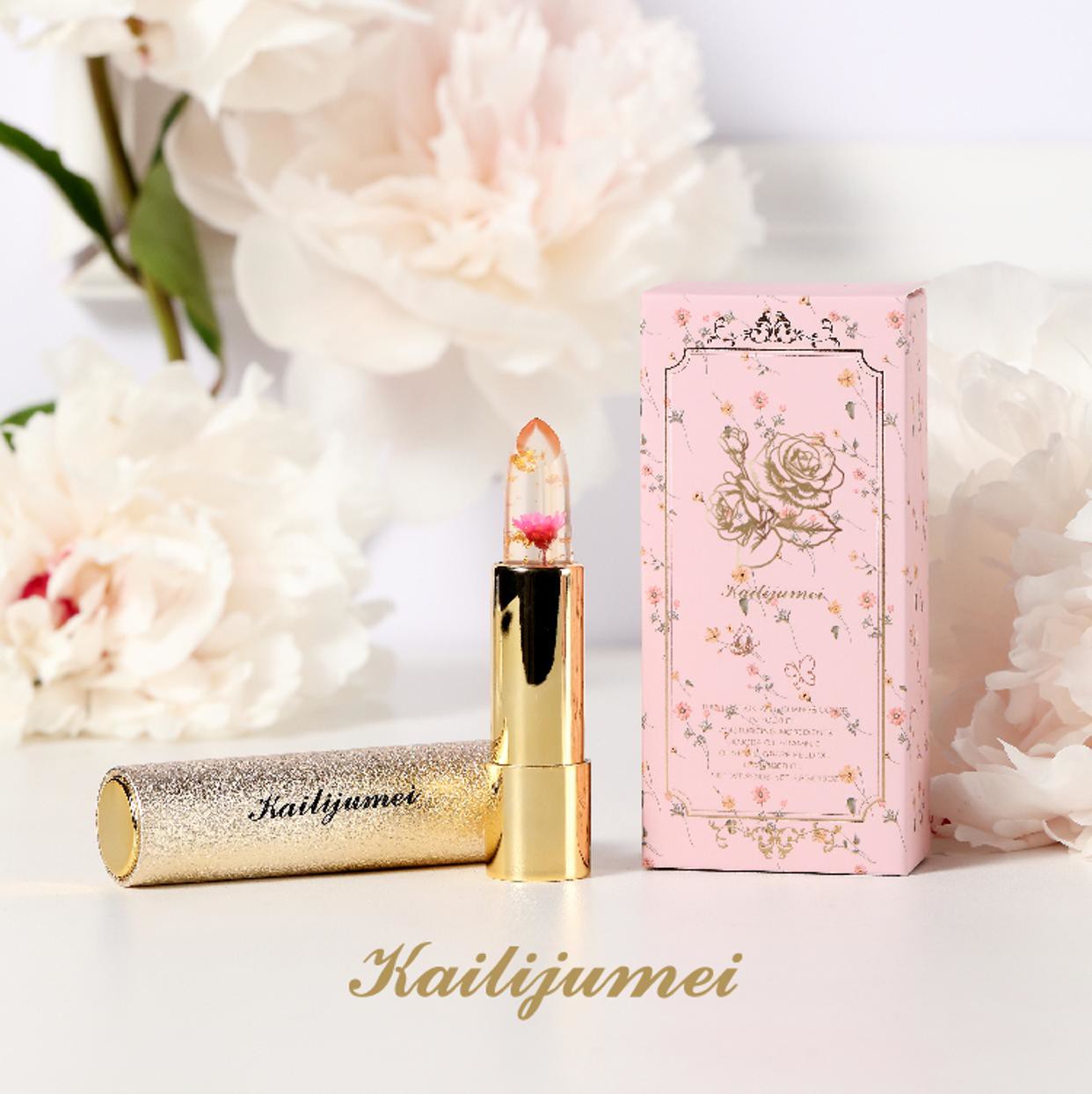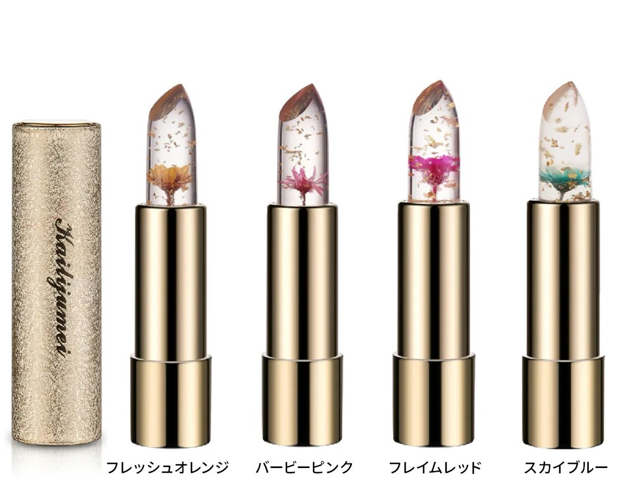 また、お花の開き方、色味が一輪一輪異なる本物のドライフラワーと金箔を中に閉じ込めた、あなただけのたった一つのフラワーリップです。