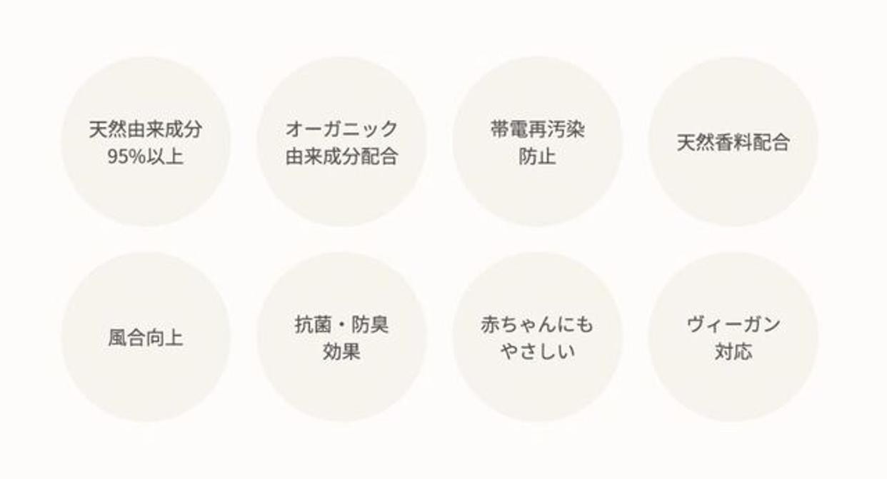 成分のほとんどが植物由来でさらにノンシリコン。デリケートなお肌をやさしく包み込み、赤ちゃんや敏感肌の方でも安心してお使いいただけます(※すべての方に刺激が起こらないということではありません)。
