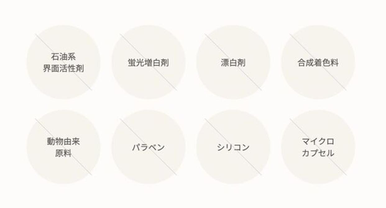 石油系界面活性剤は一切不使用。有機JASオーガニック米でできたエタノールなど、厳選された植物由来成分を配合した、人にも地球にもやさしい処方です。