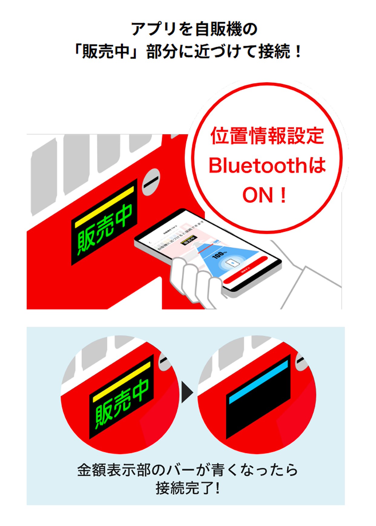 ドリンクチケットを製品に引き換える際は「Coke ON対応スマホ自販機」マークの付いた自販機へ!