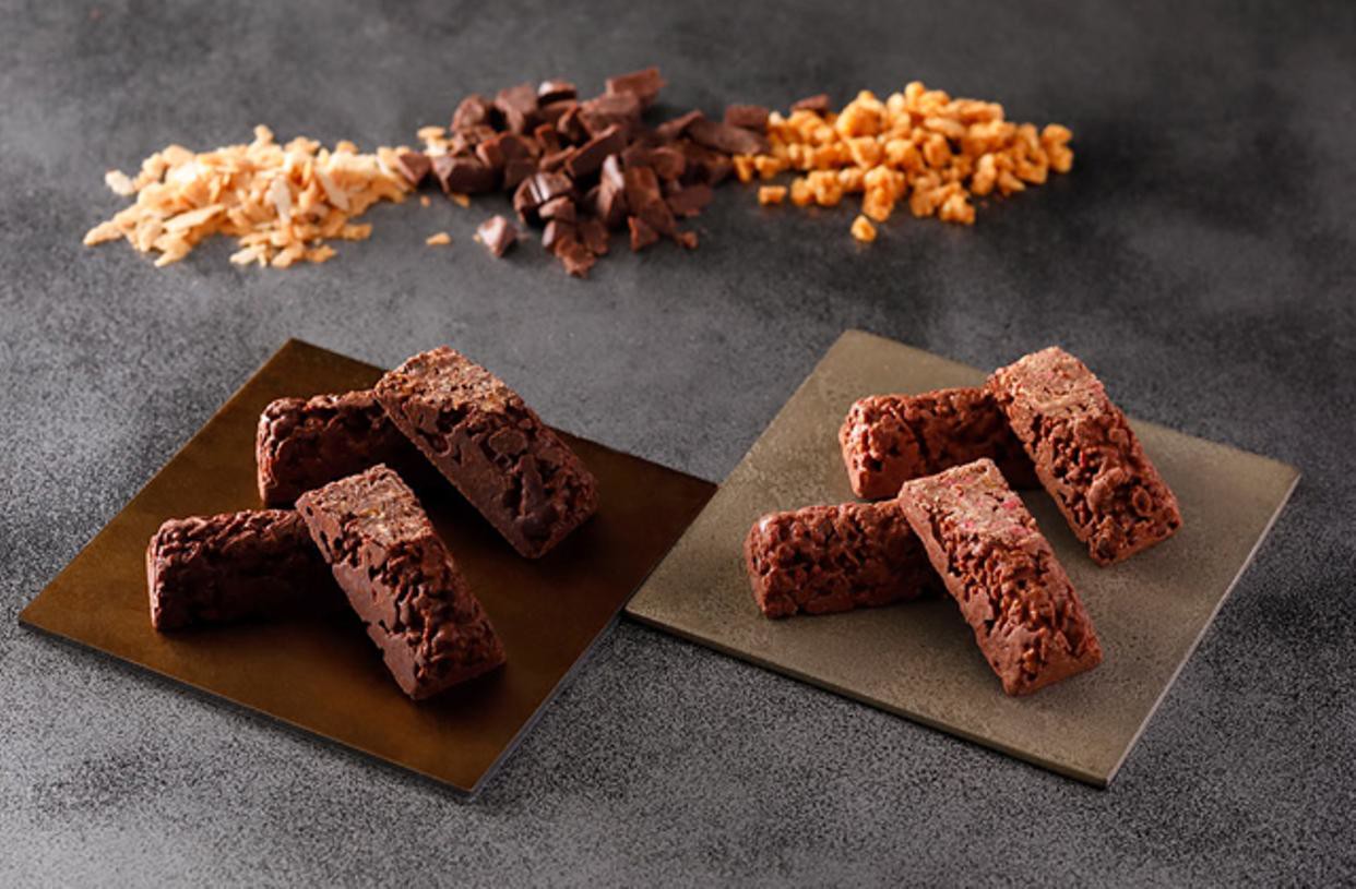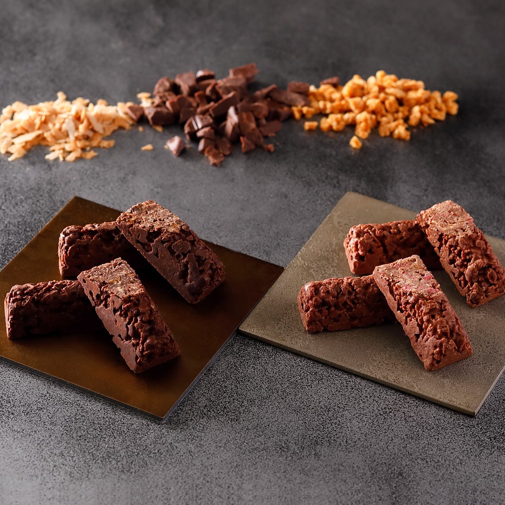 口どけの良いチョコレートに練り込んだ、香ばしいプラリネや砕いたフイユティーヌ、クッキーなどが、さくさくと浮き立つような食感を演出するチョコレート菓子。