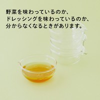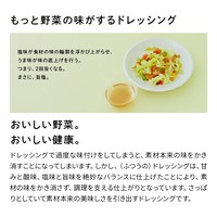ドレッシングで過度な味付けをしてしまうと、素材本来の味をかき消すことになってしまいます。しかし、「(ふつうの)ドレッシング」は、甘みと酸味、塩味とうま味を絶妙なバランスに仕上げたことにより、素材の味をかき消さず、調理を支える仕上がりとなっています。さっぱりとしていて素材本来の美味しさを引き出すドレッシングです。