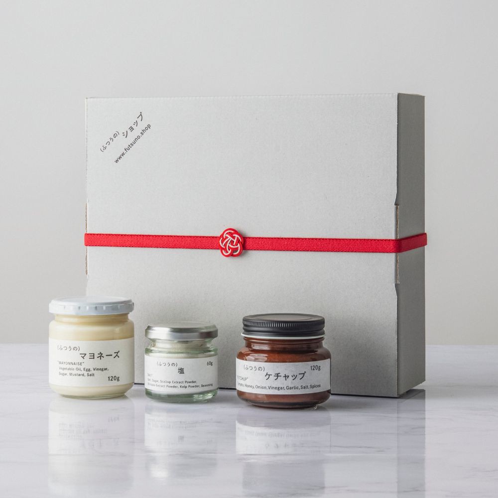 マヨネーズとケチャップの黄金コンビに、塩味と旨みを引き立てる塩をプラス。いつもの食卓をちょっと楽しくする、(ふつうの)ショップ自慢のセットです。サラダや揚げ物に、お好みで組み合わせて新しい味わいを発見。どなたにも安心しておすすめできるセットです。