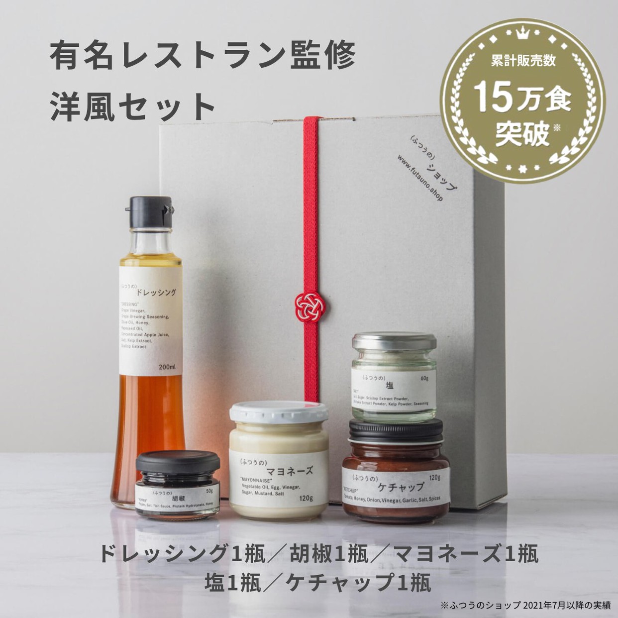 【内容】マヨネーズ1瓶(160g)、ケチャップ1瓶(120g)、ドレッシング1瓶(200ml)、塩1瓶(60g)、胡椒1瓶(50g)