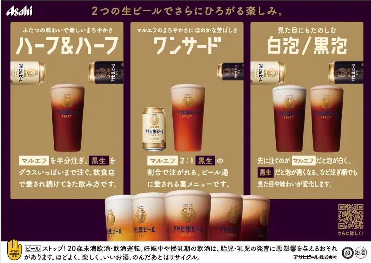 1本ずつそれぞれの特長をお楽しみいただくのはもちろんですが、マルエフと黒生を混ぜていただくのもオススメです。