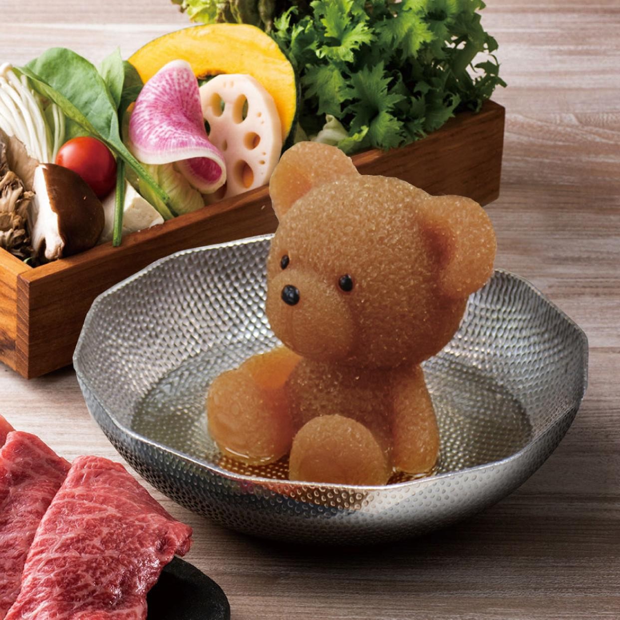 くまちゃんをお鍋の中に入れて温めてあげると、ユラユラと溶け出し…まるでくまちゃんが気持ちよく温泉に入っているよう!