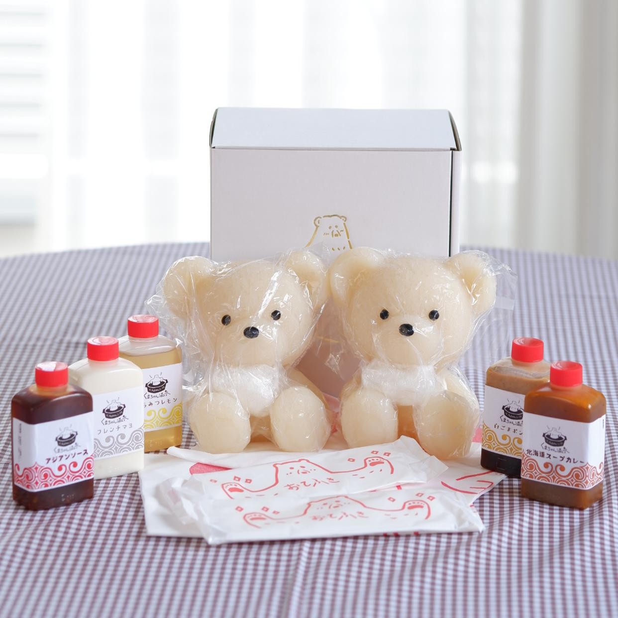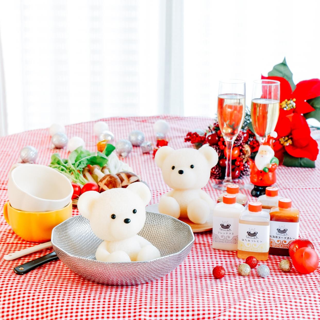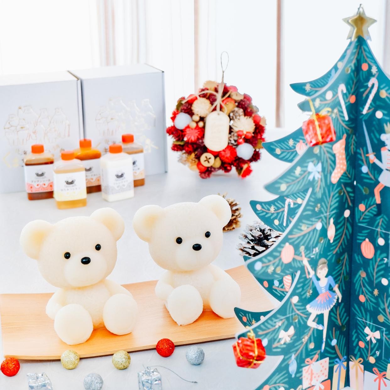 癒しの湯「豆乳醤油風味」の白くま2匹のペアセット。くまちゃん1匹でのご入浴には1~2人用の小さめ鍋がぴったり。2匹一緒にご入浴は3~4人用の鍋でお召し上がりいただけます。