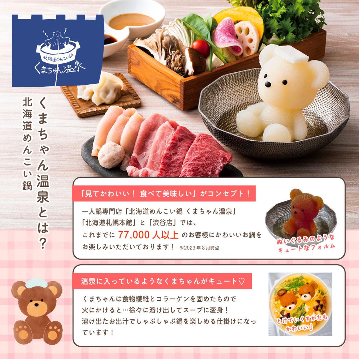 北海道札幌で誕生した一人鍋専門店「北海道めんこい鍋 くまちゃん温泉」開店から2年足らずで 77,000人以上※2023年8月時点 のお客様がご来店!