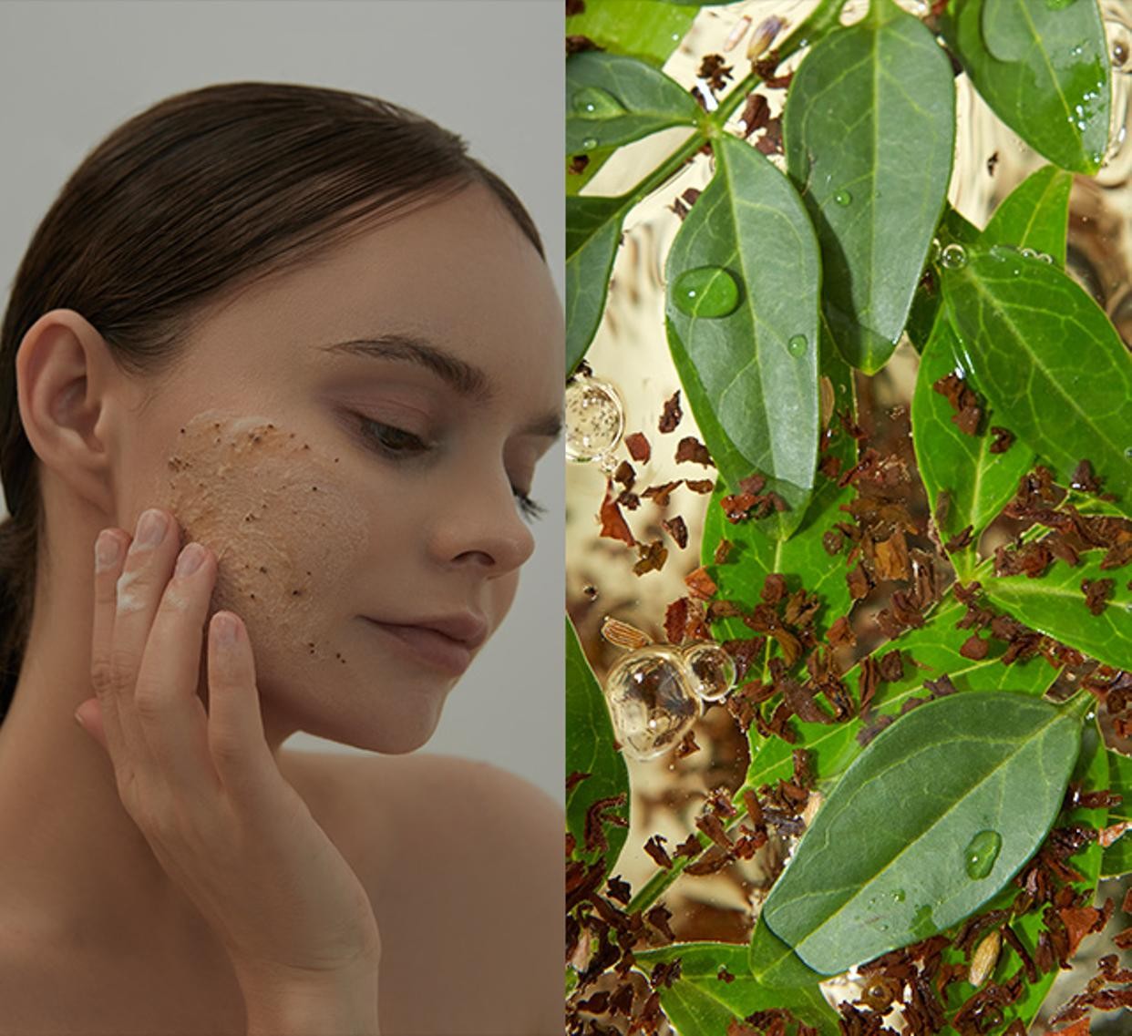 ・さまざまな大きさの粒子の植物由来のスクラブ原料で角質ケア*
