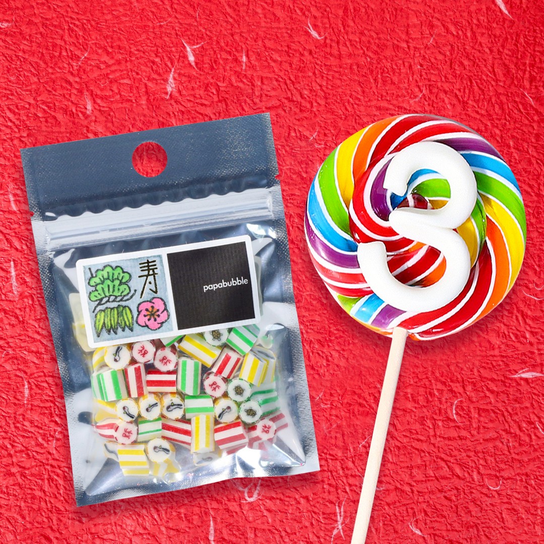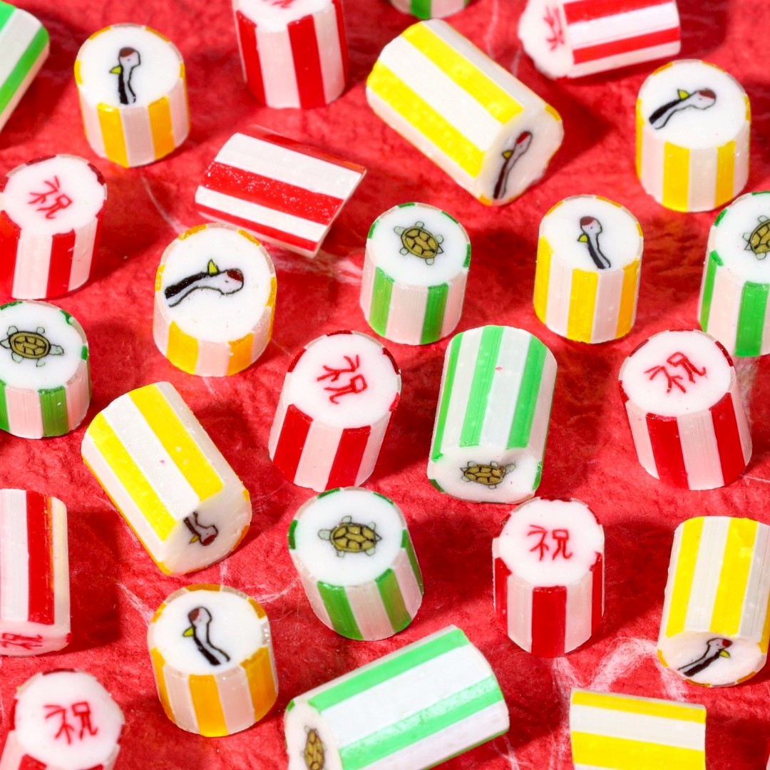 昨年リニューアルしたパパブブレの千歳飴は、鹿児島睦氏によるオリジナルデザイン。お子様でも持ちやすいサイズ感に仕上げ、モチーフをもとにした可愛らしいうさぎとリスを描いた「寿」と、長寿や繁栄を象徴する「鶴と亀」の2種類をご用意しています。職人がひとつひとつ、お祝いの想いを込めて丁寧に制作しました。