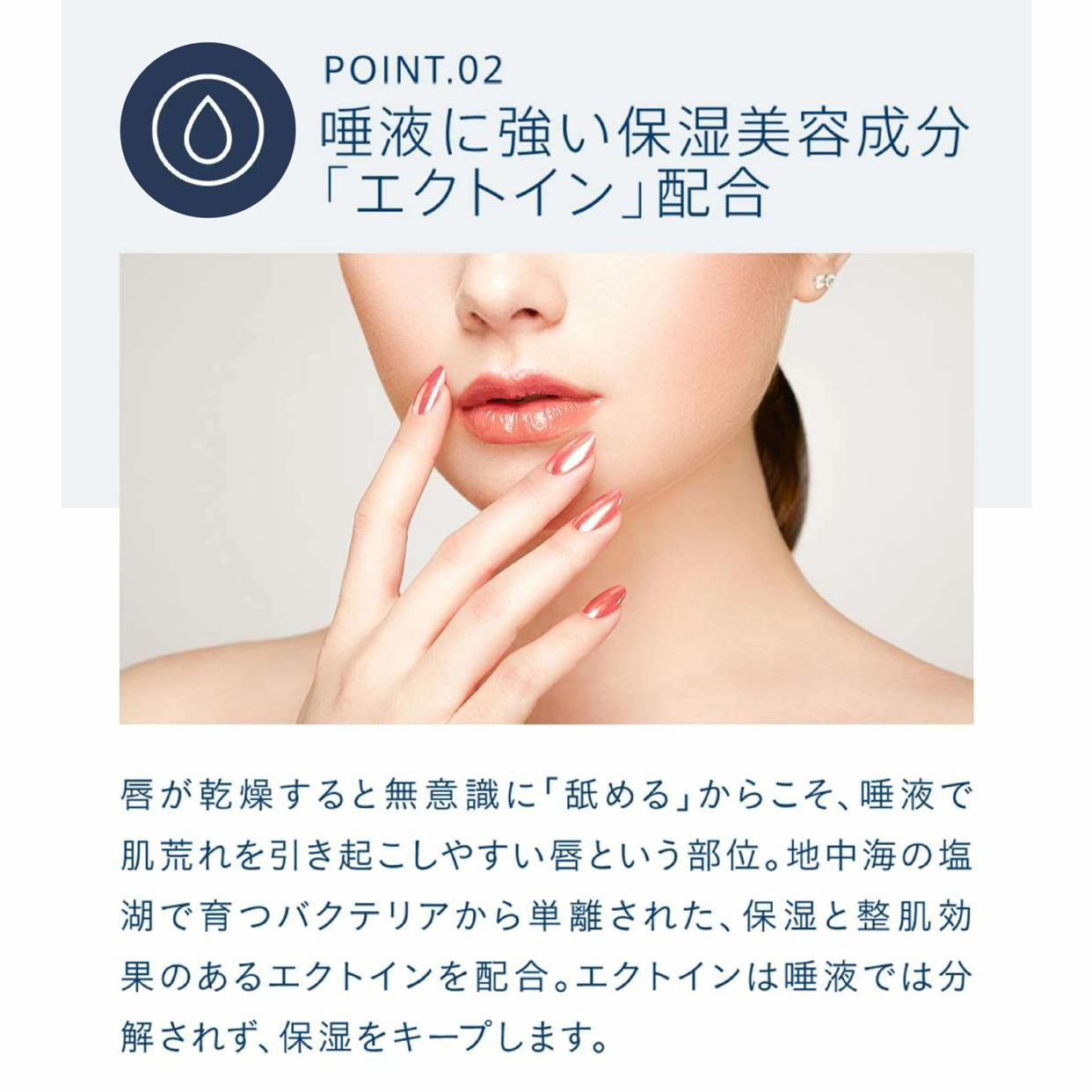 口唇荒れは生活習慣にも依存し、唇を気にして刺激を与える習慣がある10代・20代にトラブルが多いとされます。特に、唇を舐める行為はNGです。一方で、意図せず唇を舐める行為は日常的に起きていて、リップクリームを塗っていても、唾液で分解されやすい成分では、本来の保湿効果を示さなくなります。そこでLip A P.P.は、唾液で分解されない保湿剤「エクトイン」に着目。「エクトイン」は唾液に強いだけでなく、保湿剤として一般的な「アラントイン」同様に、保湿効果が期待できます。
