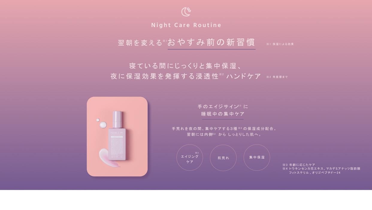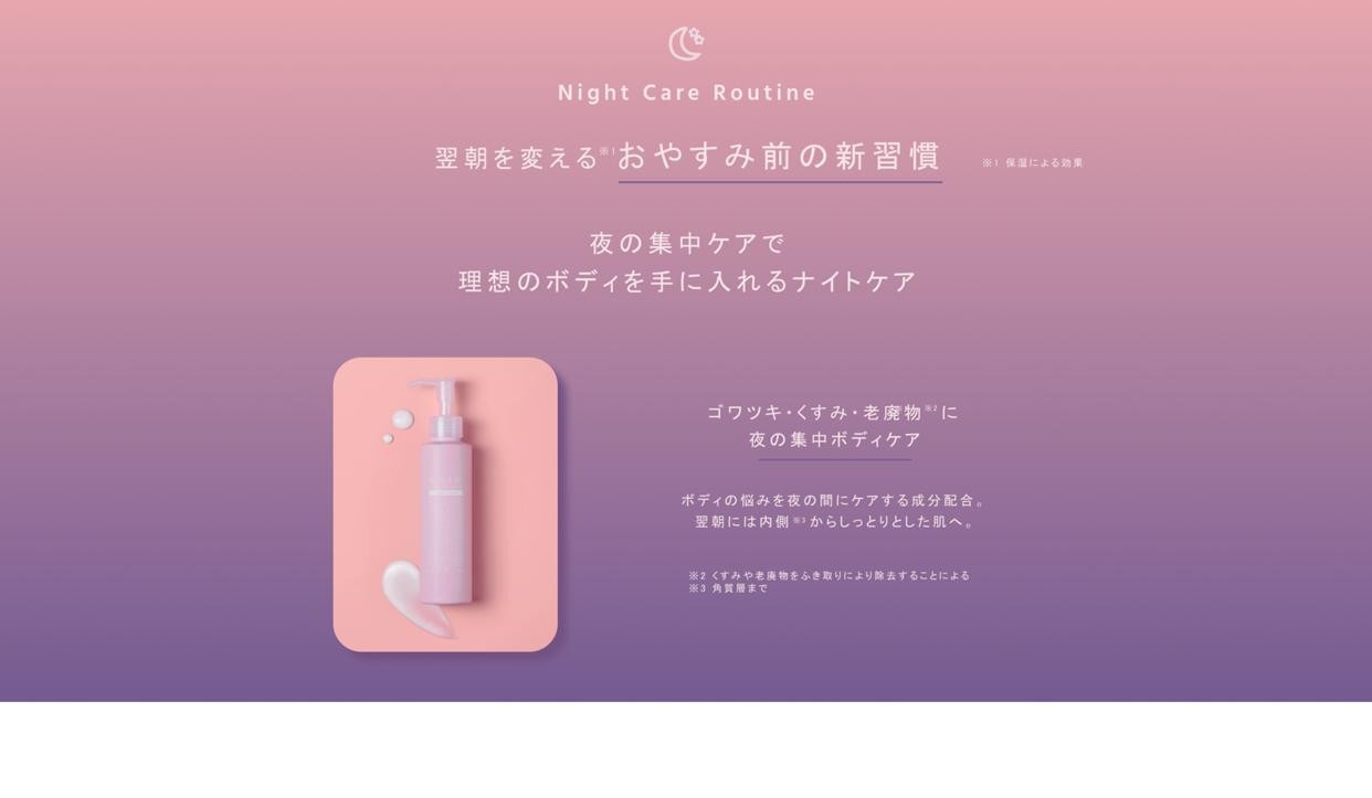 夜の時間を味方につけ、肌本来の美しさに導き、翌朝には潤いで満たされ、しっとりとした肌に。
