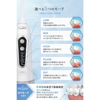 low~highモードに+強弱水圧が断続的に流れ歯茎マッサージにおすすめなpulseモード、 8段階の水圧が4秒ごとに変化し、好きな水圧に設定可能な DIYモードを搭載。