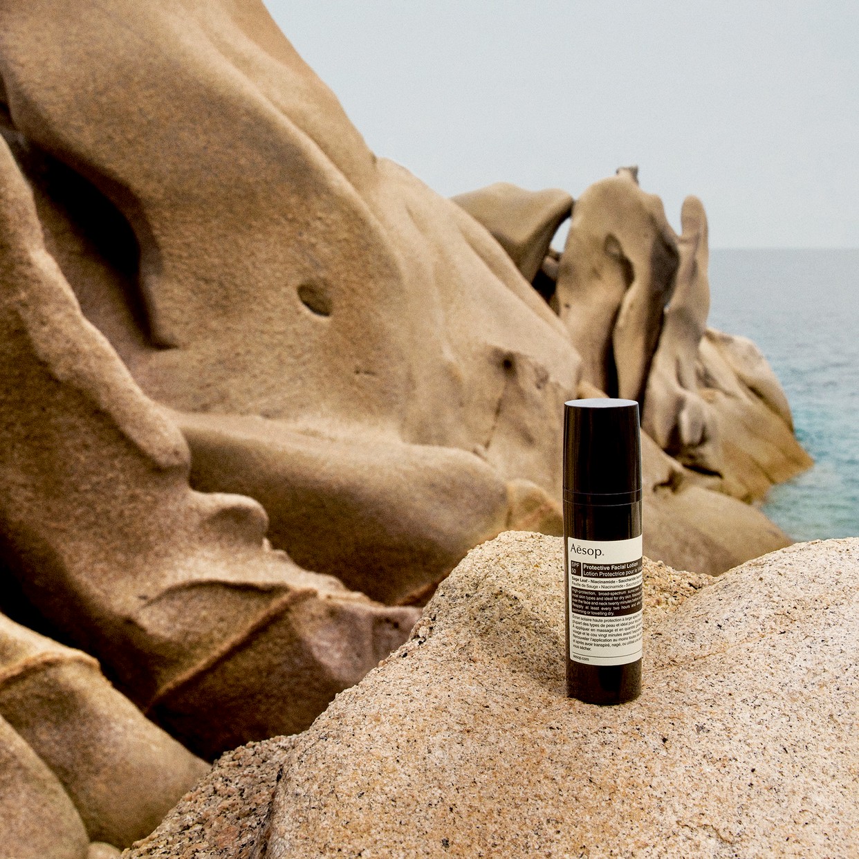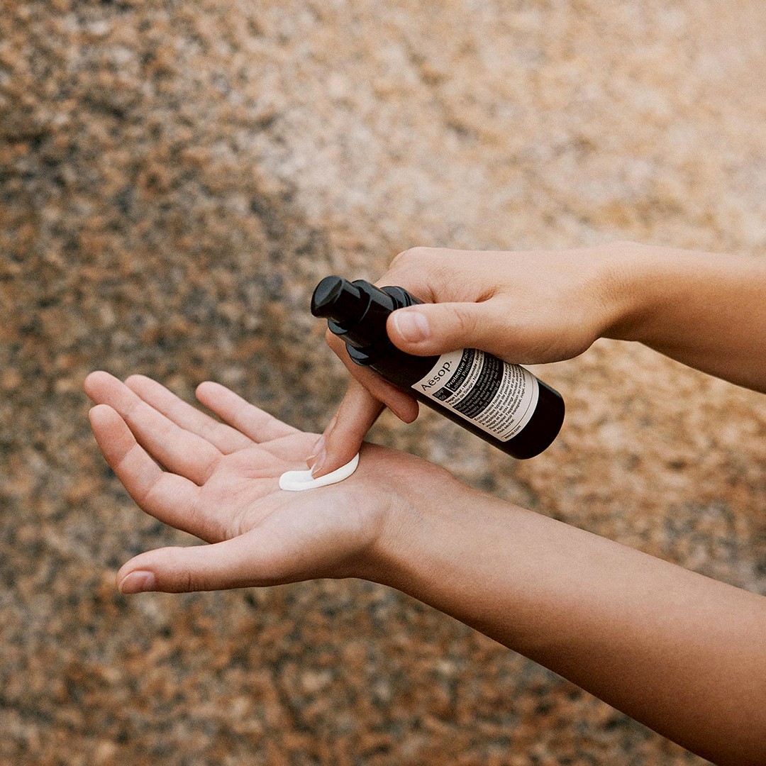 プロテクティブ フェイシャル ローション SPF50はイソップのサンケアシリーズ最新作であり、広域スペクトルのUV保護を実現する毎日の使用に適したハイドレーターです。敏感肌を含む、ほとんどの肌タイプの方に適しており、晴雨にかかわらず、毎日お使いいただけます。