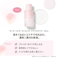 つけた瞬間にキメが整い、ふっくらとしたやわらかさと、濡れたようなツヤが宿る肌へ。ローズPDRN*1、8種のヒアルロン酸*2、レチナール*3、ナイアシンアミド*4など先進の美容成分を贅沢に配合。ダマスクローズウォーター*5と植物由来のクリーム層が瞬時に溶け合い、肌を包み込みます。乾燥やゆらぎやすい肌、毛穴目立ち*6などのサインに多角的にアプローチし、使うたびに肌印象が変わる二層式化粧液。甘く優雅なダマスクローズ*7の香り。