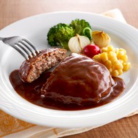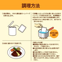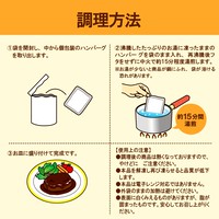 牛肉(オーストラリア)、ソテーオニオン、つなぎ(卵、パン粉)、乳等を主要原料とする食品、食塩、香辛料、乳糖/調味料(アミノ酸等)、乳化剤、酢酸Na、クチナシ色素、香料、カンゾウ抽出物、ソース[グレービーソース(トマトペースト、糖類(砂糖、水飴)、ブラウンルゥ、還元水飴、ワイン、その他)、トマトケチャップ、オニオンルゥ、しょうゆ、砂糖、ビーフペースト、デミグラスソース、食塩、乳等を主要原料とする食品、ガーリックソテー/調味料(アミノ酸等)、カラメル色素、増粘剤(キサンタン)、甘味料(甘草)、香料、カンゾウ抽出物]、(一部に小麦・卵・乳成分・牛肉・大豆・豚肉を含む)