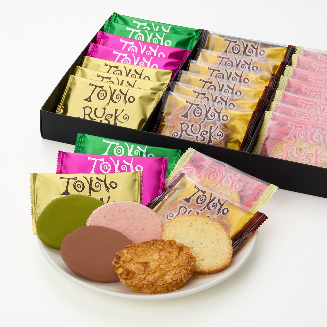 東京ラスク定番人気の「キャラメルアマンド」と「シュガーバター」に、季節限定ショコラスクがあわさった贅沢な贈り物。