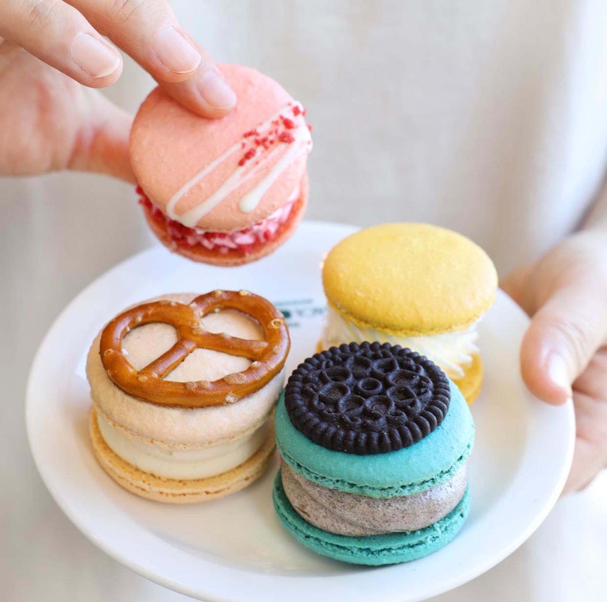 爽やかでまろやかないちごミルククリームにドライイチゴがアクセントなマカロン。