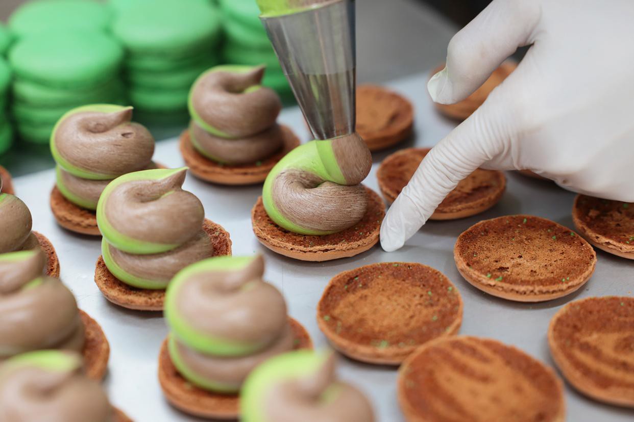 「太っちょマカロン」という意味で、一般的な マカロンに比べてもっとボリューミーなマカロンです。 たっぷりのバタークリームをサンドし、 味も見た目も豪華なスイーツです。